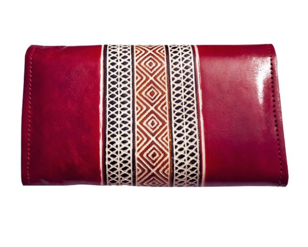 This purse is a classic example of age old Shantiniketan craft. It was introduced in West Bengal, India during the 1940s. The traditional motifs used for These Shantiniketan bags depict the rich cultural heritage of India. It derives its name from the place where it was first introduced – Shantiniketan. The Shantiniketan style evolved as a result of the Art Movement. These products have now become world famous for their applique, batik and embossed craft work. Moreover the process of burnishing the leather gives it an elegant sheen and brings out the colors. The embossing craft is an intricate process. After the final leather is made, it is then stitched into the desired product . Finally the product is coated with a lacquer finish for making the product shiny and long lasting.