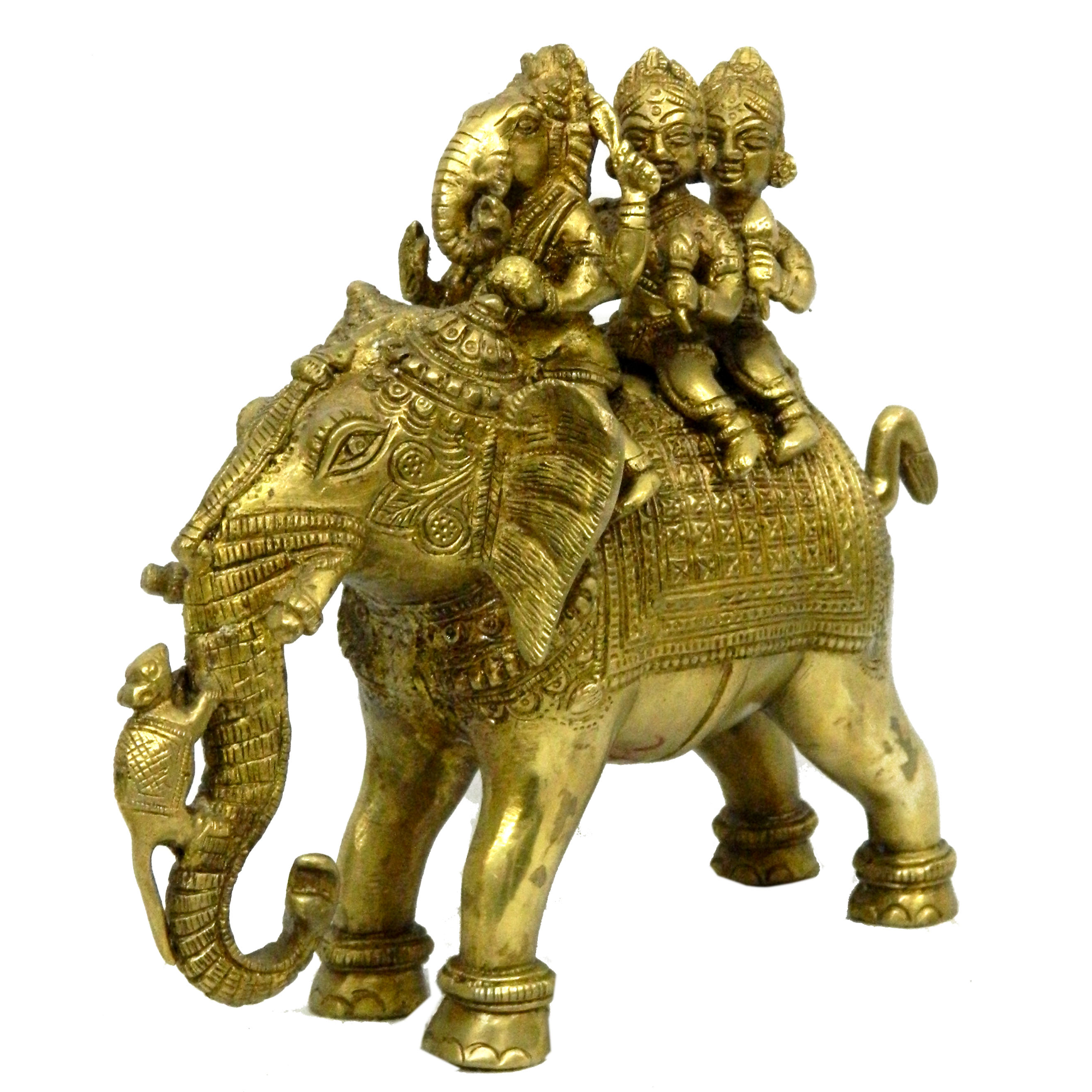 Handcrafted Brass Ganesh with Riddhi Siddhi Sitting on Elephant, 2.89 Kg. A divine symbol of wisdom, success, and prosperity—perfect for pooja, décor, or gifting.