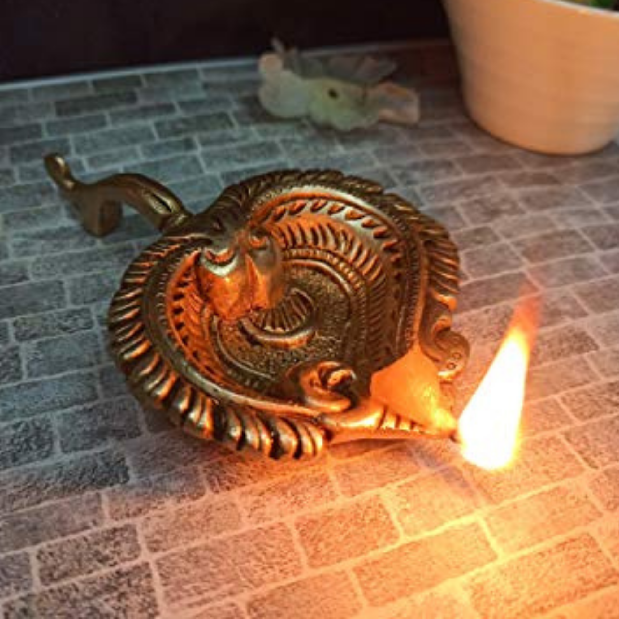 Design: Features a classic diya design with an ergonomic handle, offering easy grip and safe handling during prayers or rituals.