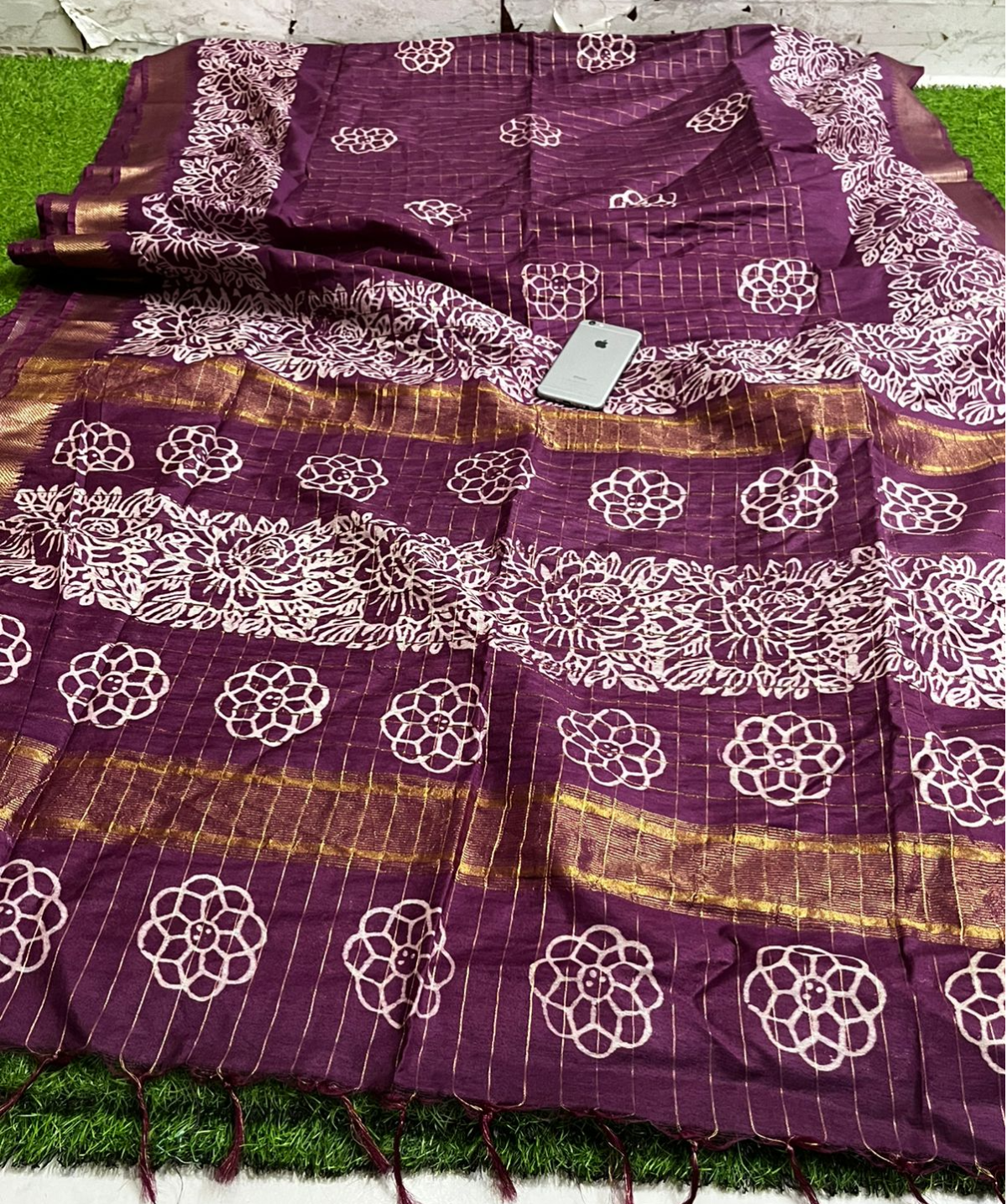 Bring home the charm of traditional craftsmanship with the Aarvi Grace Kota Staple Mangalagiri Saree, beautifully adorned with modern discharge print designs.