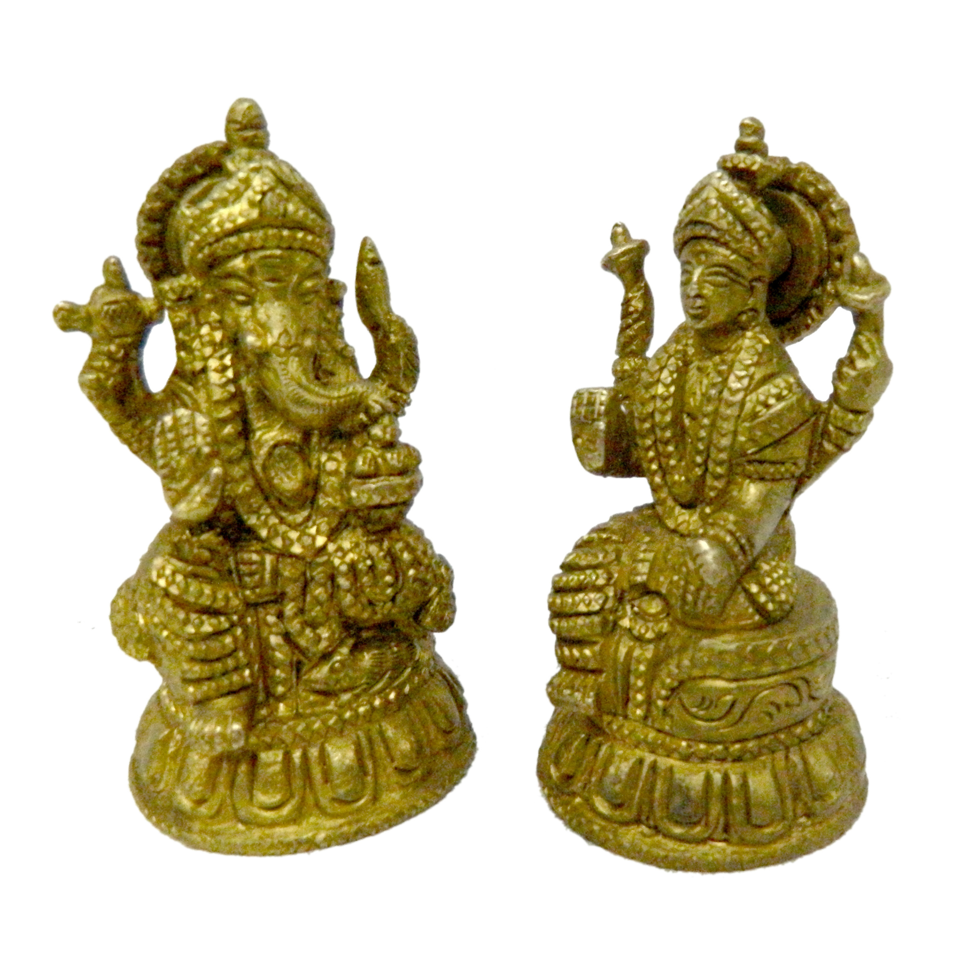 Brass Ganesha Laxmi Sitting Pair Small Idol KBH02695