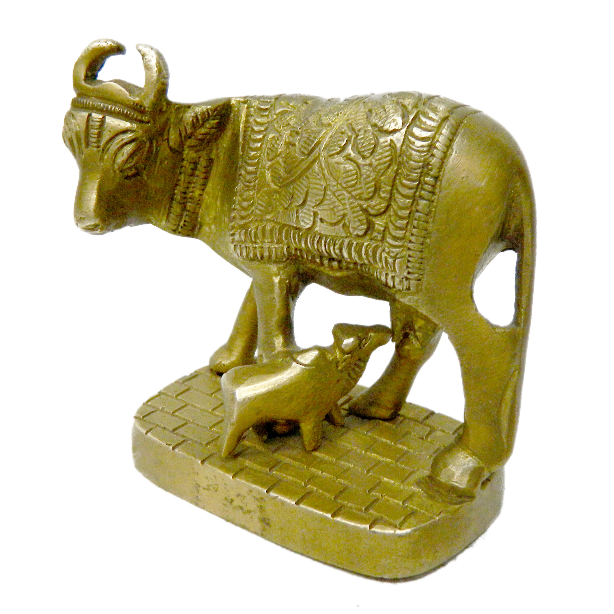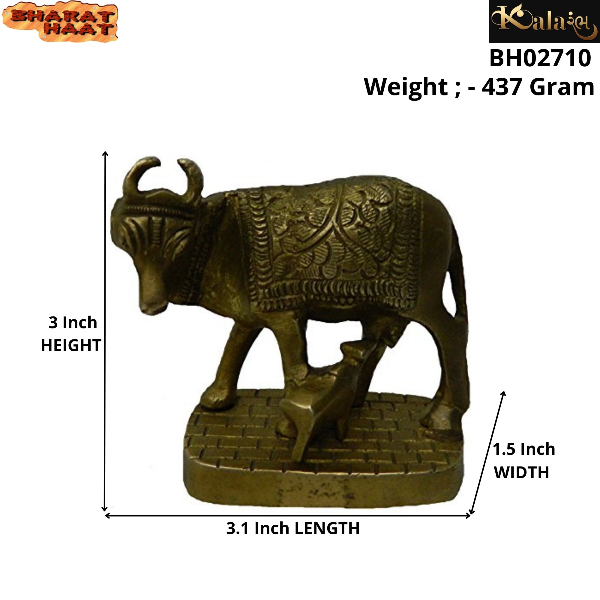 Handcrafted Brass Cow with Vachedu Mid (437 g) – auspicious and elegant brass cow idol, ideal for home altars, shelves, or gifting.