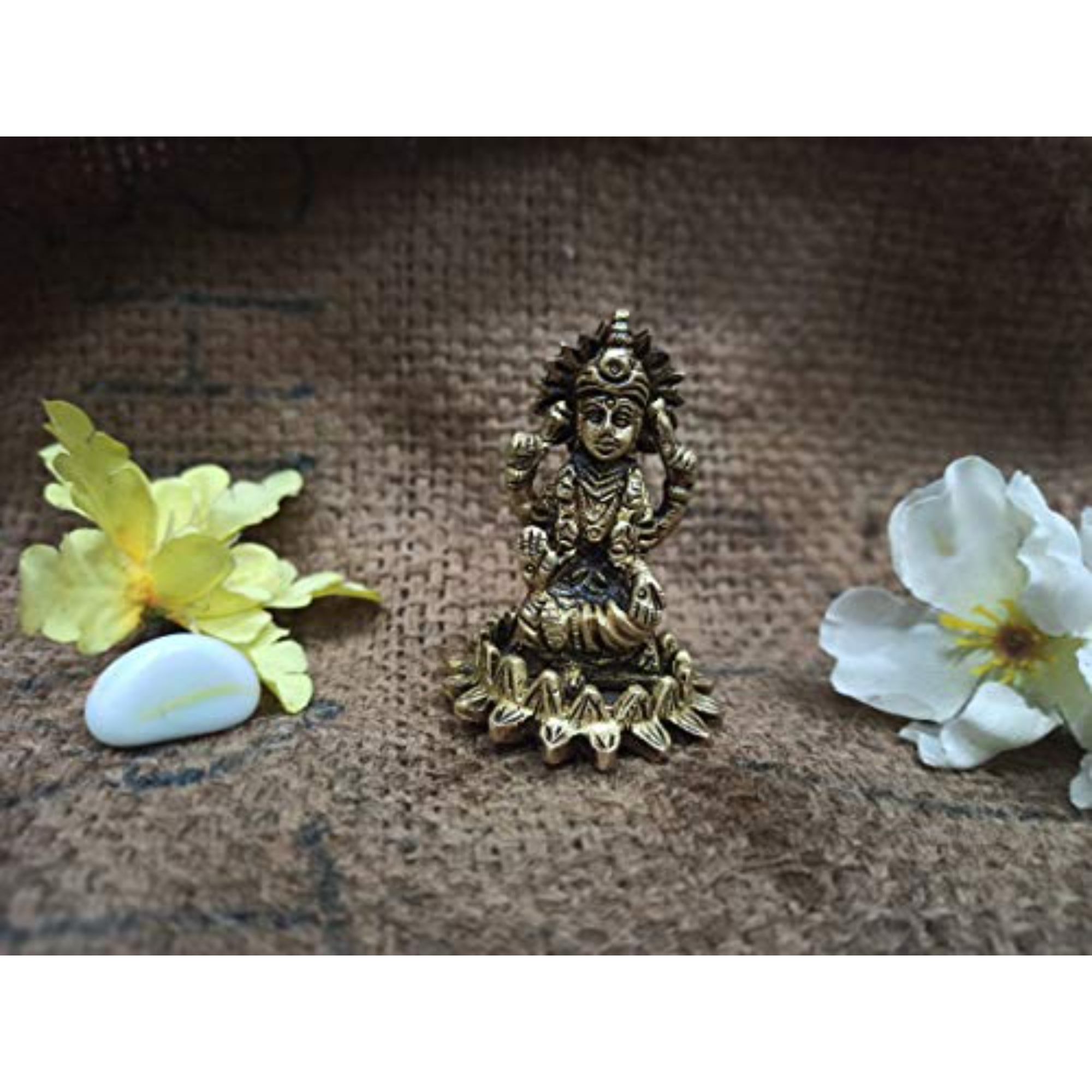 Brass Laxmi Sitting on Kamal Mid (122g) — elegant handcrafted brass idol symbolizing wealth, purity, and spiritual grace. Perfect for pooja rooms, offices, or gifting.