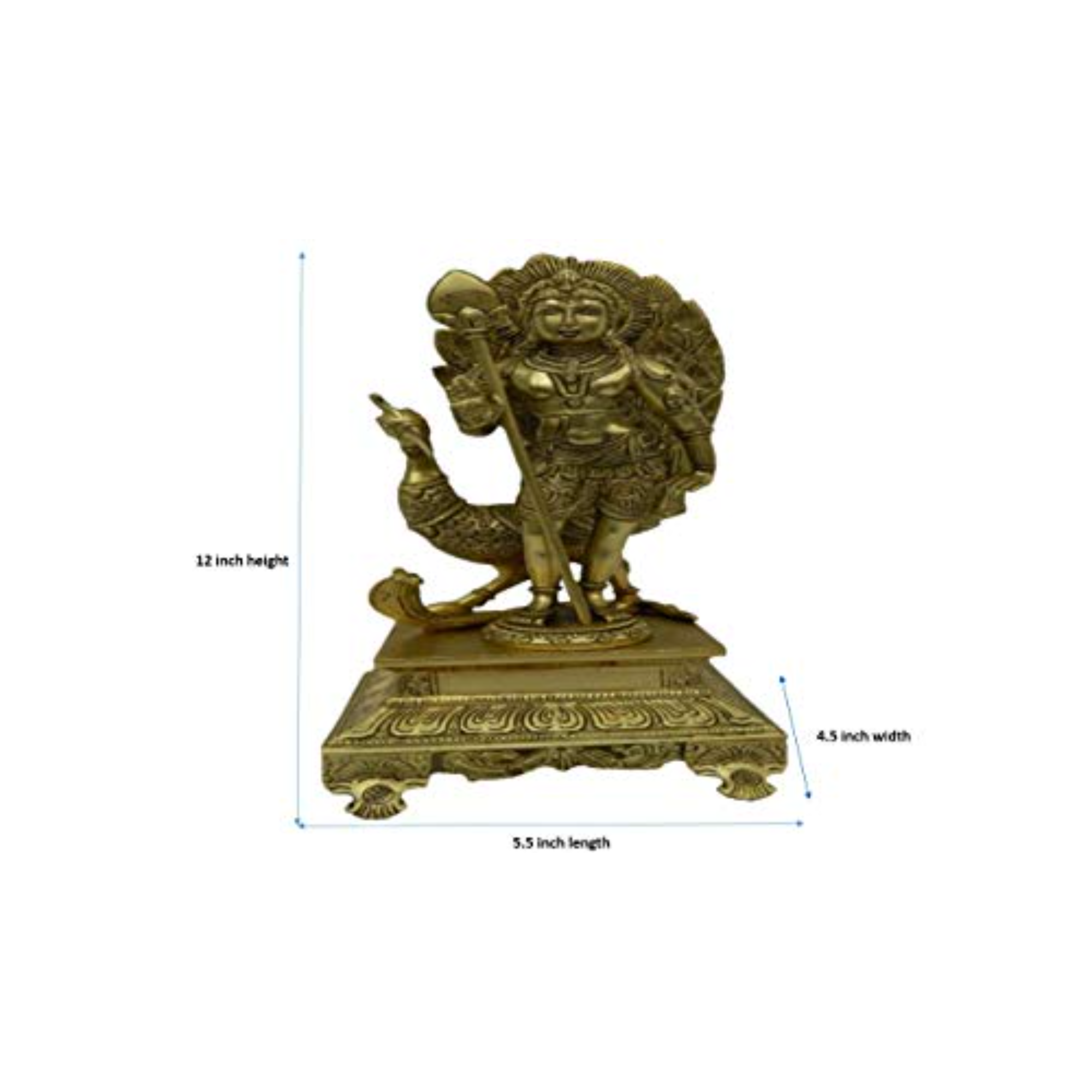 Divine Symbolism: Features Lord Kartikey with a peacock, representing courage, wisdom, and spirituality.