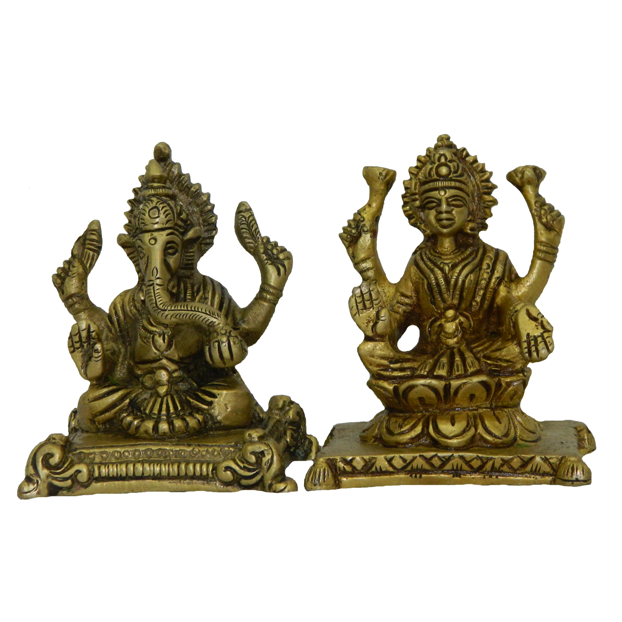 Brass Sitting Ganesha Laxmi Mid (582g) — elegant handcrafted brass idol representing prosperity, wisdom, and spiritual positivity. Ideal for home temples or gifting.