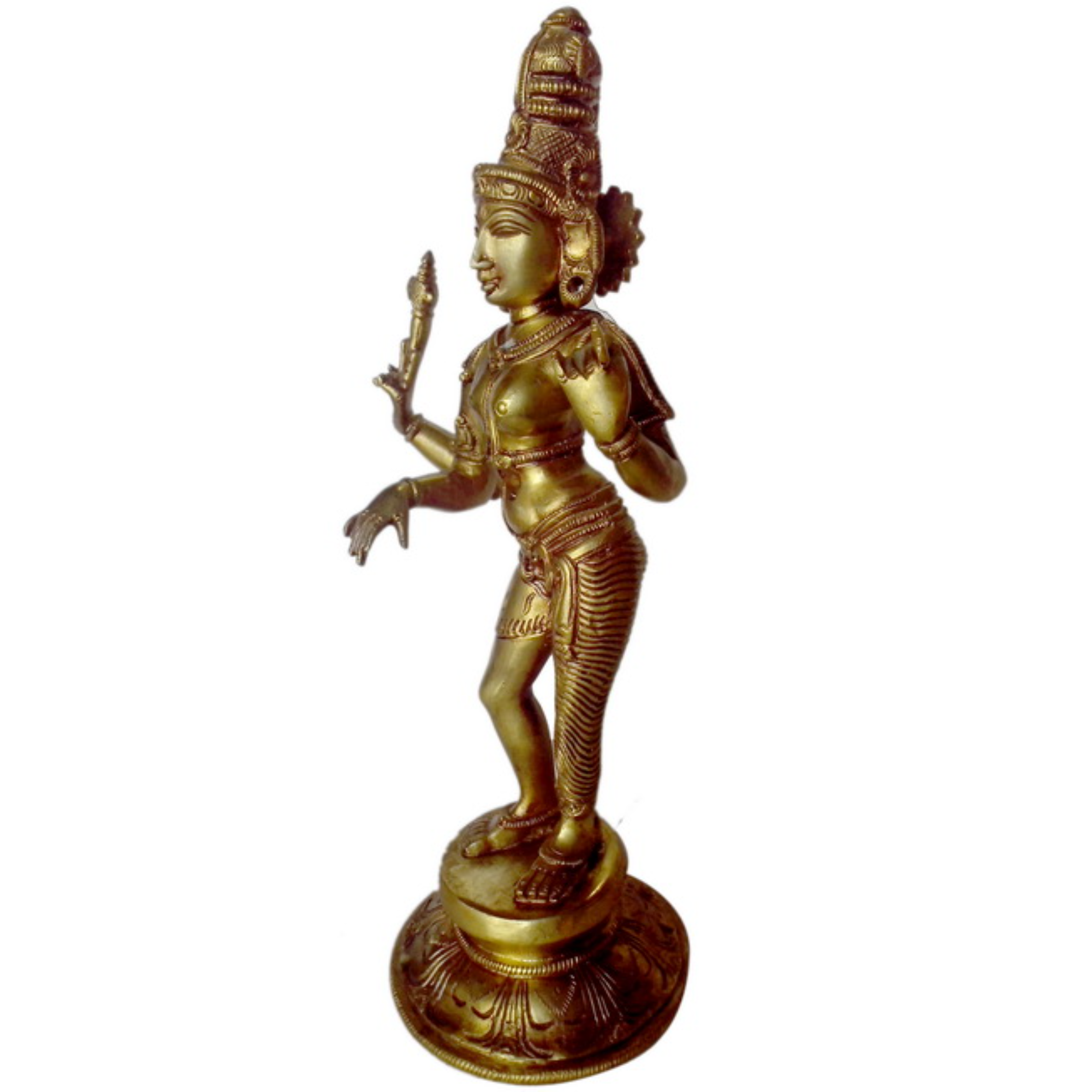 The statue has excellent dimensions of 12 inches tall and 4.5 x 4.5 inches width, making it ideal for placing on prayer altars, temple shelves, puja rooms, or meditation spaces. Weighing a solid 2.13 kg, this heavy brass piece demonstrates authentic craftsmanship with intricate details and fine artistic finishing that reflects traditional Hindu temple art.