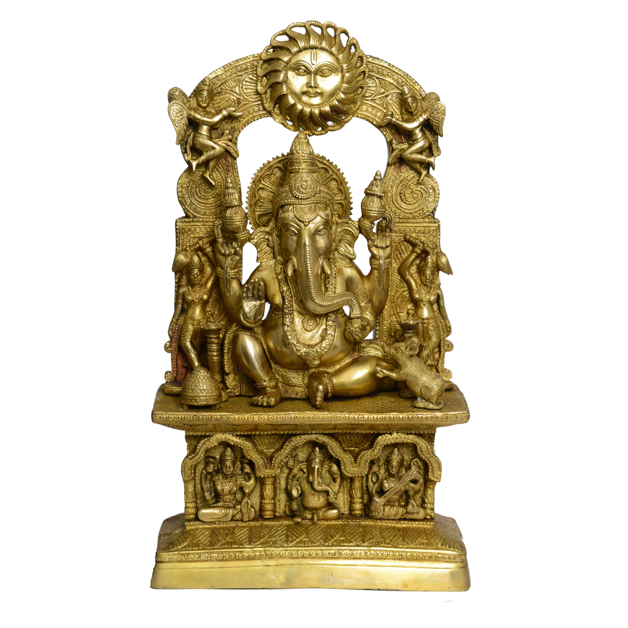Brass Temple Ganesha (13.88 Kg) – Large handcrafted brass idol of Lord Ganesha, perfect for temple décor, home puja rooms, or gifting. Symbolizes wisdom, prosperity, and protection.
