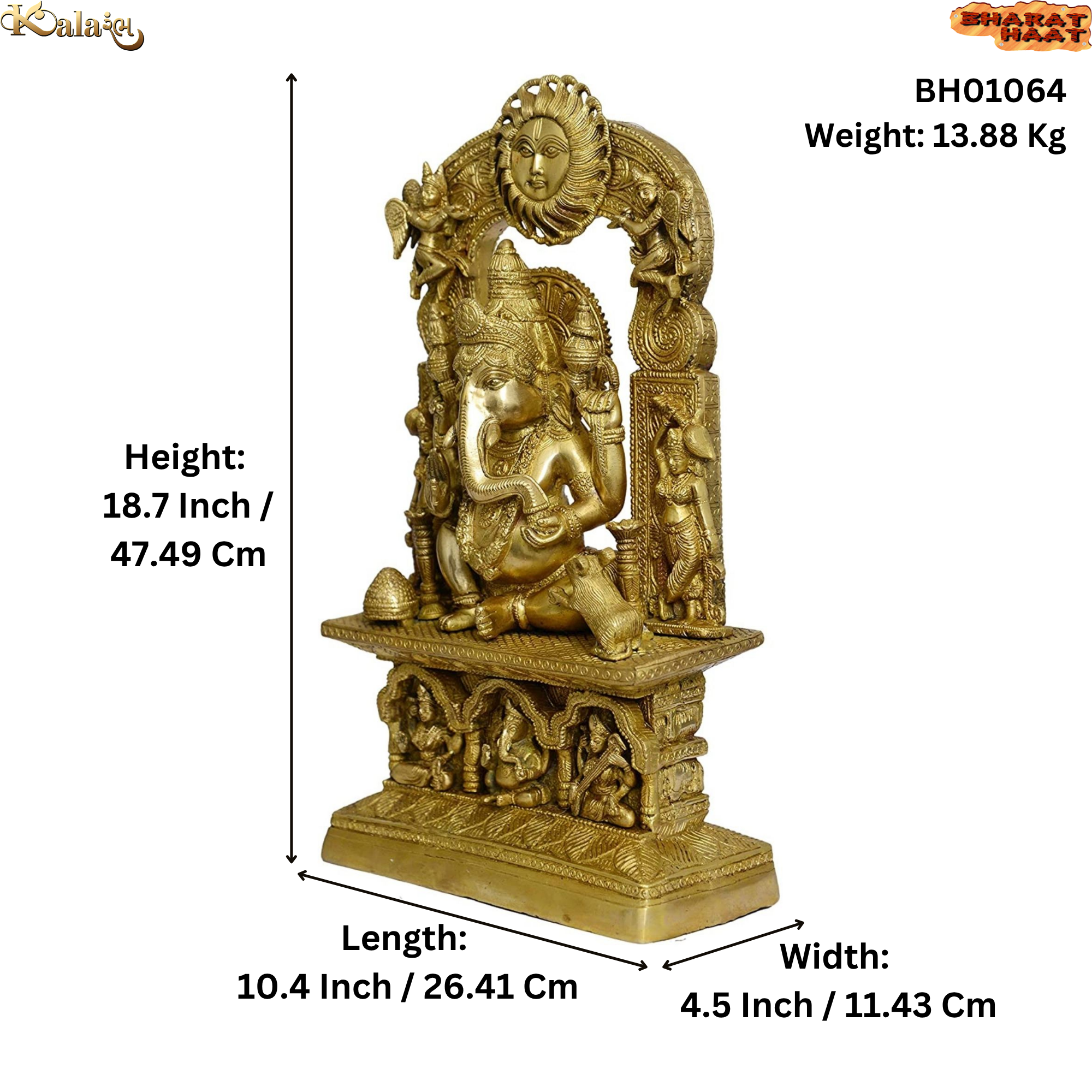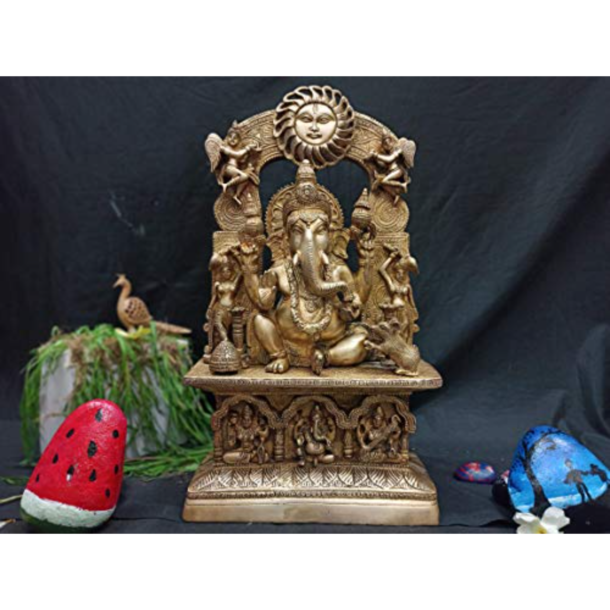 Design: Exquisitely sculpted brass Ganesha idol designed for temple and home décor, symbolizing wisdom, prosperity, and protection.