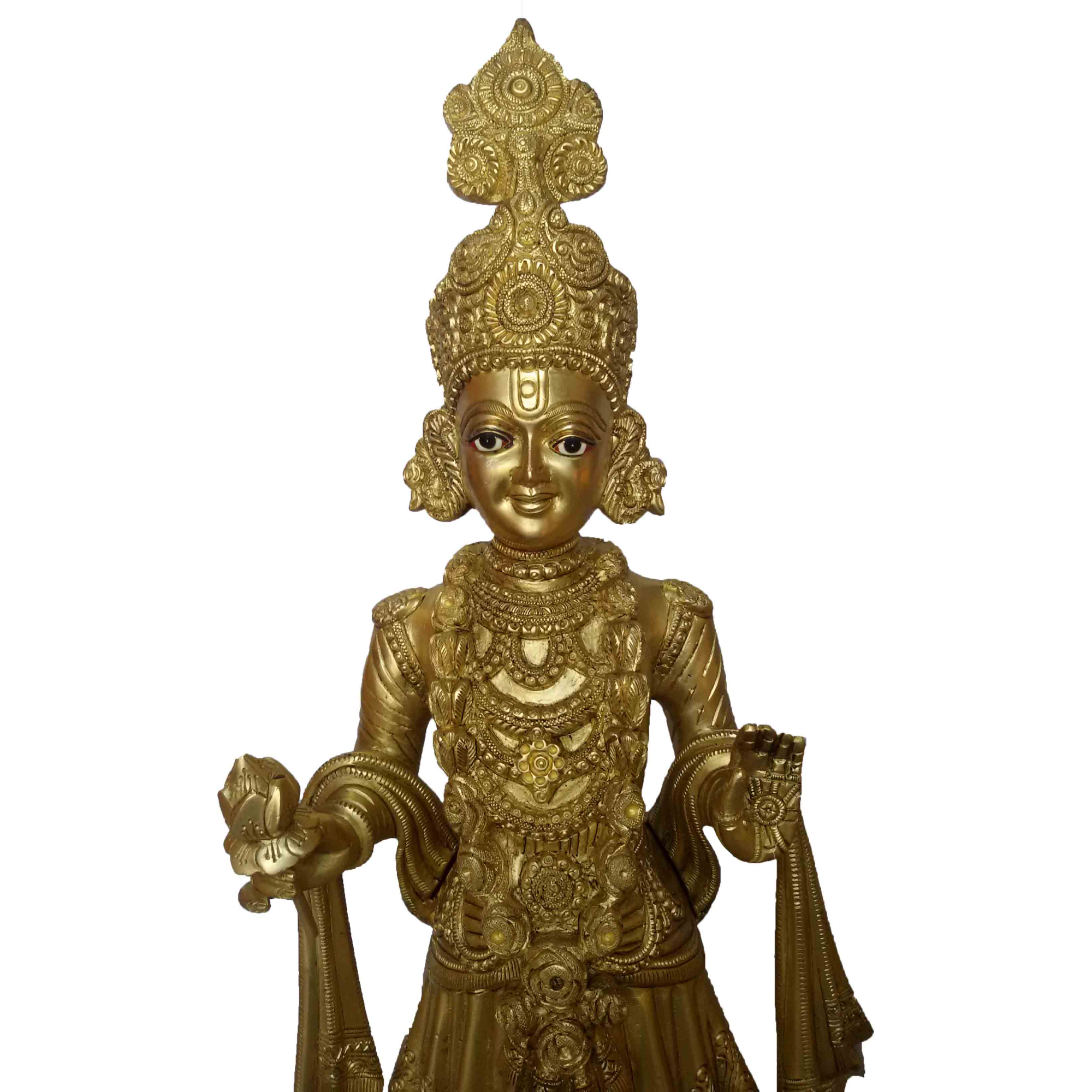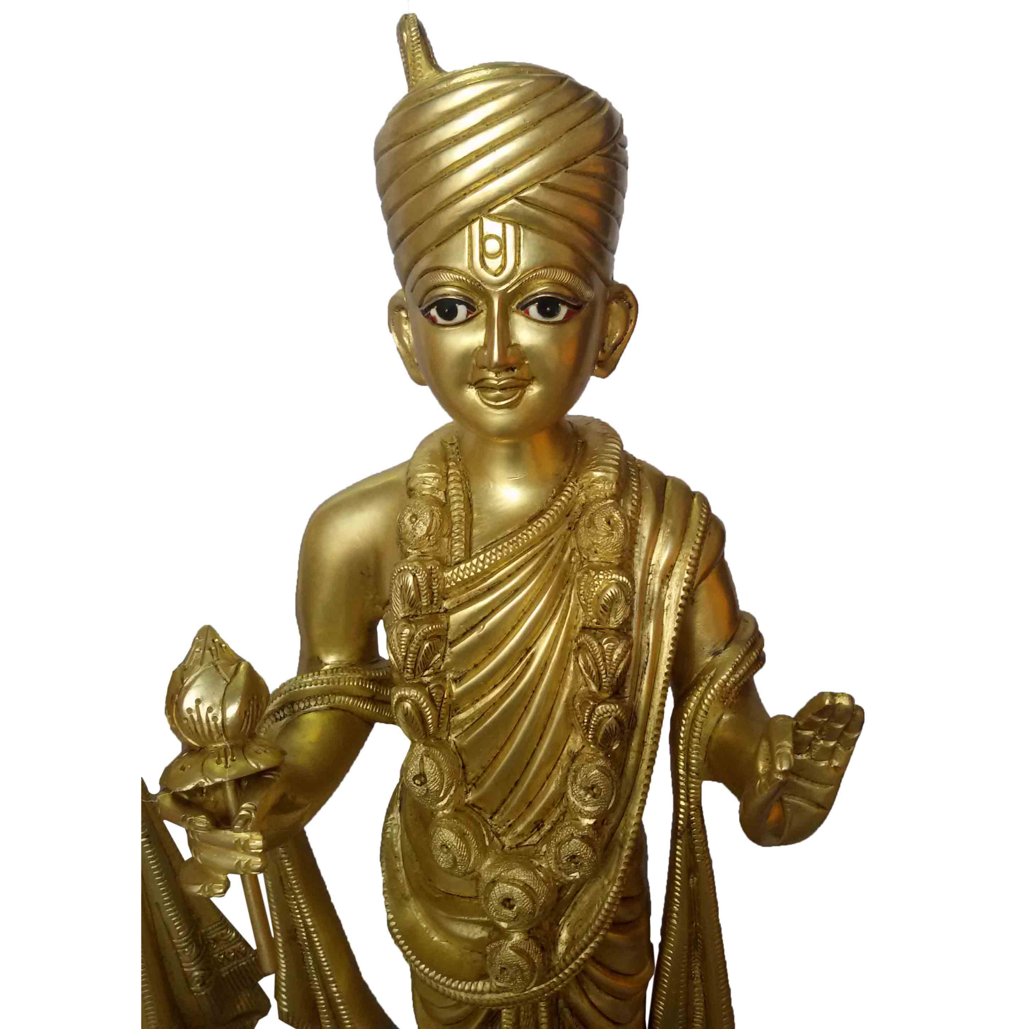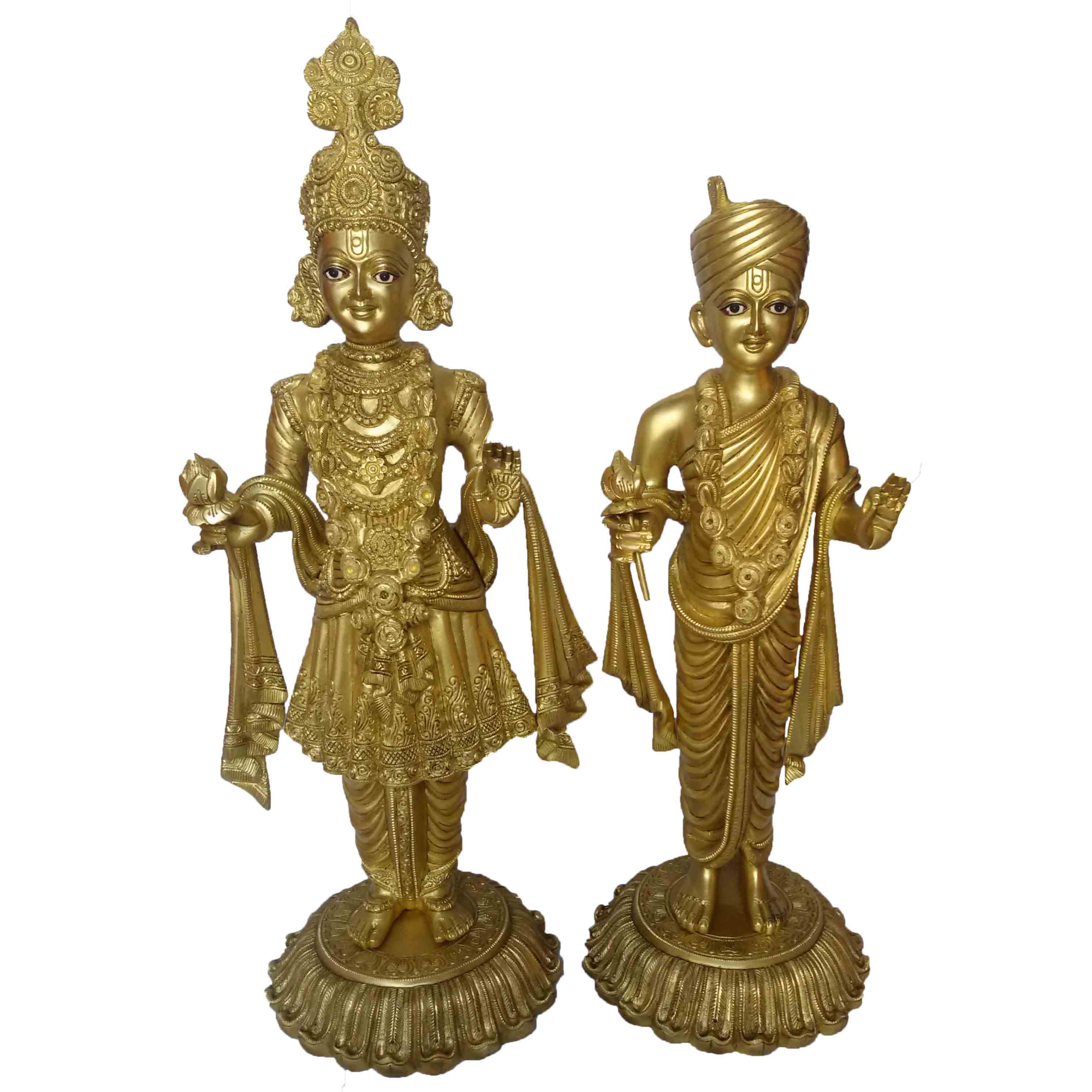 Design: Beautifully sculpted brass idols of Lord Swaminarayan in a paired design, showcasing divine artistry, grace, and spiritual elegance.