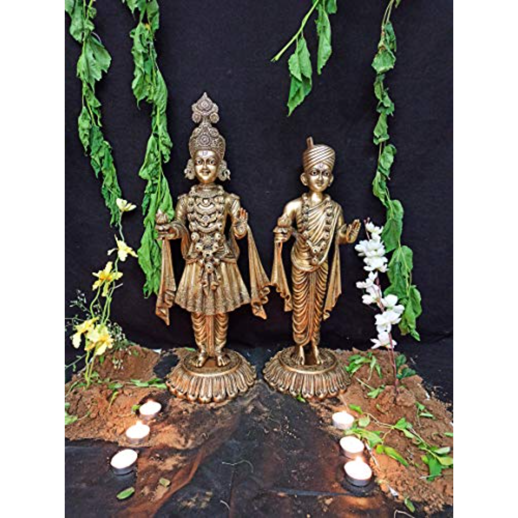 Brass New Swaminarayan Pair (19.7 Kg) – Large handcrafted brass idol set for home temples, symbolizing devotion, purity, and spiritual prosperity. Ideal for puja décor and gifting.