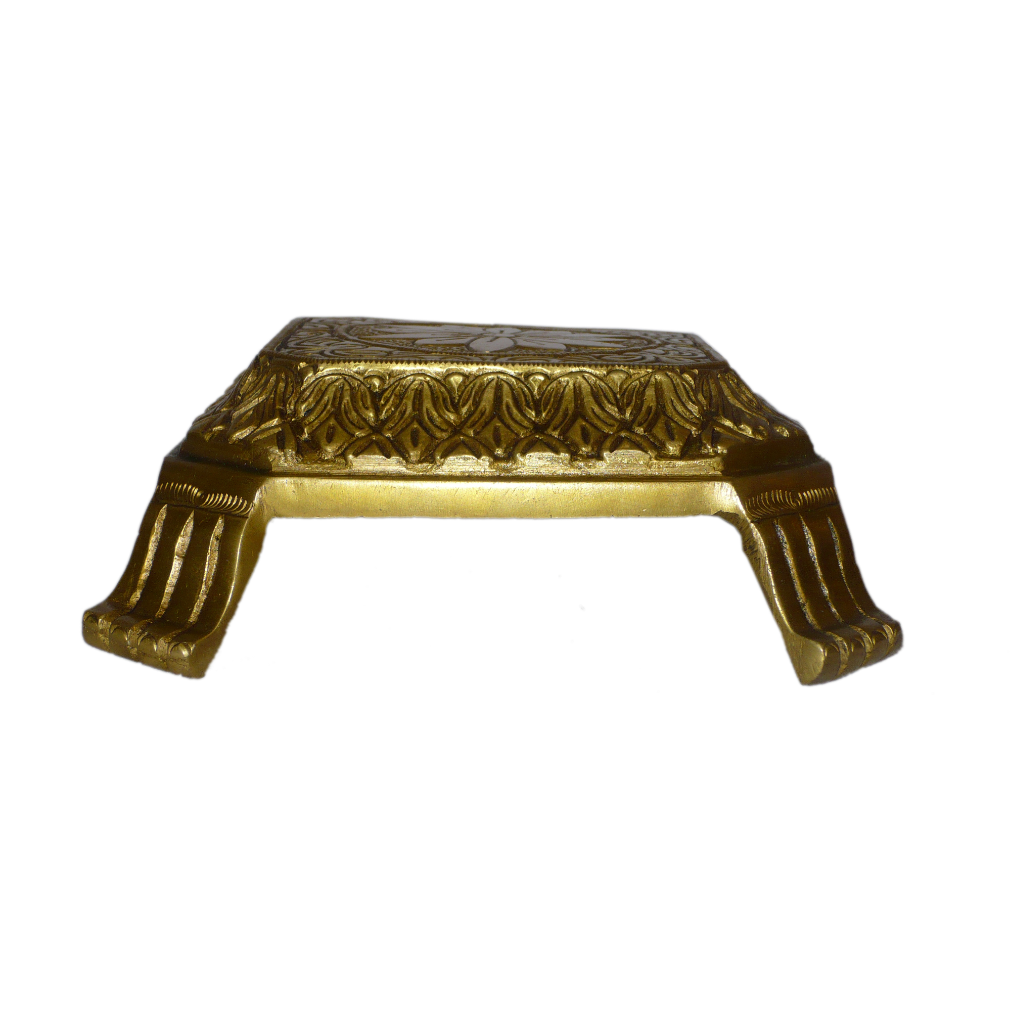 Design: Beautifully designed brass bajath with intricate flower motifs, symbolizing prosperity, beauty, and traditional Indian artistry.