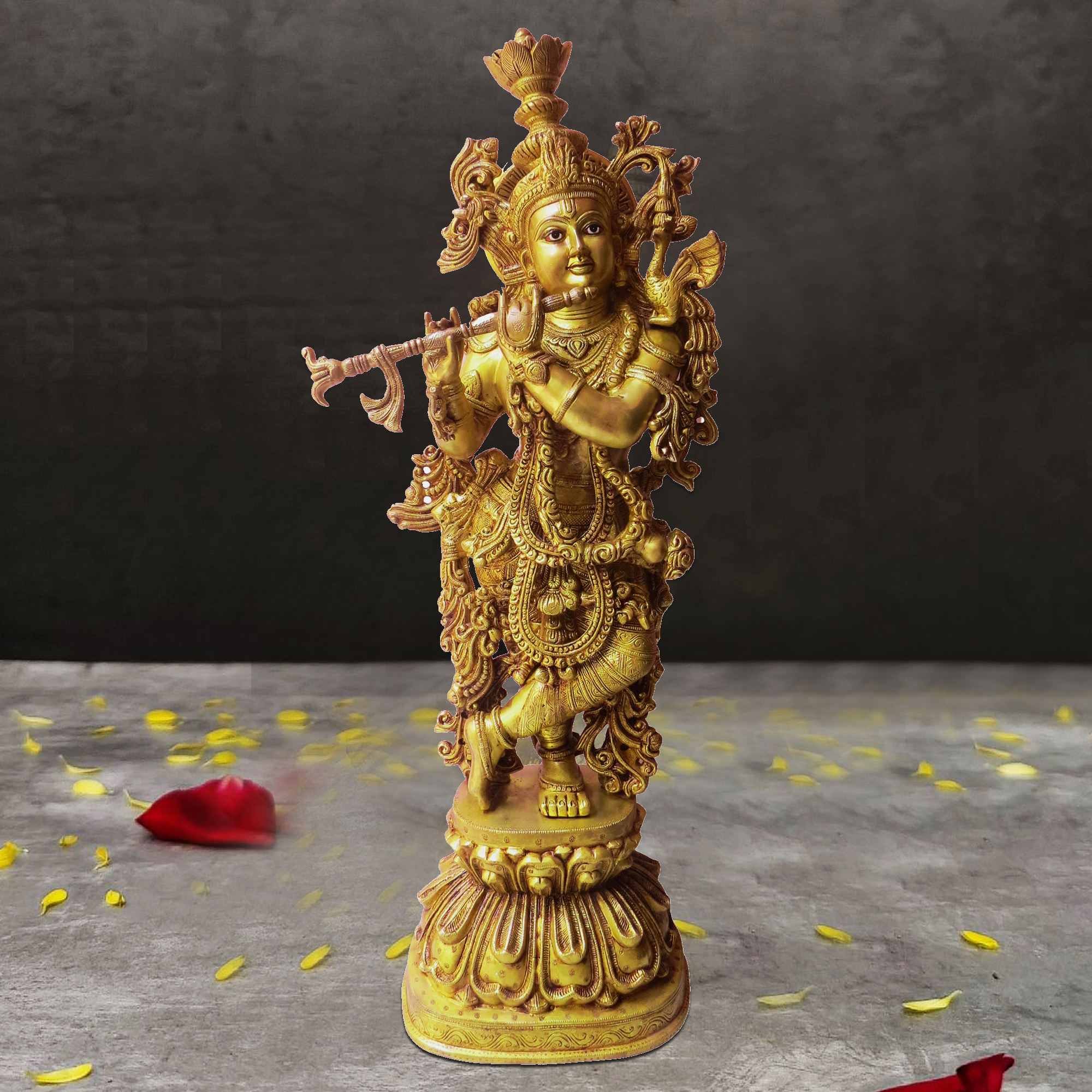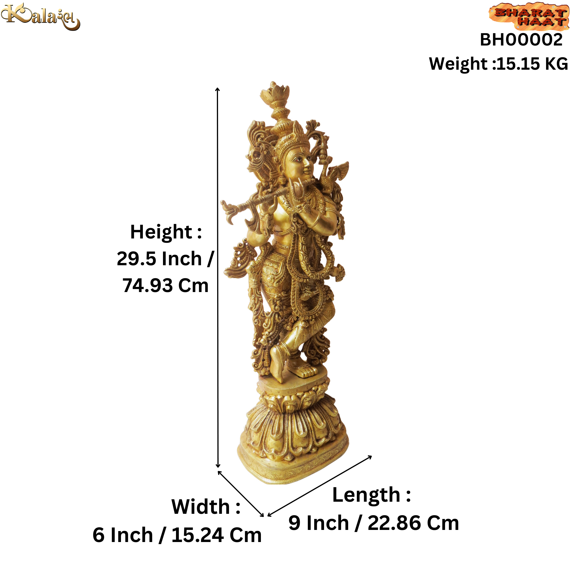 Design: Beautifully sculpted standing brass Krishna idol, depicting divine grace, love, and devotion in traditional craftsmanship.