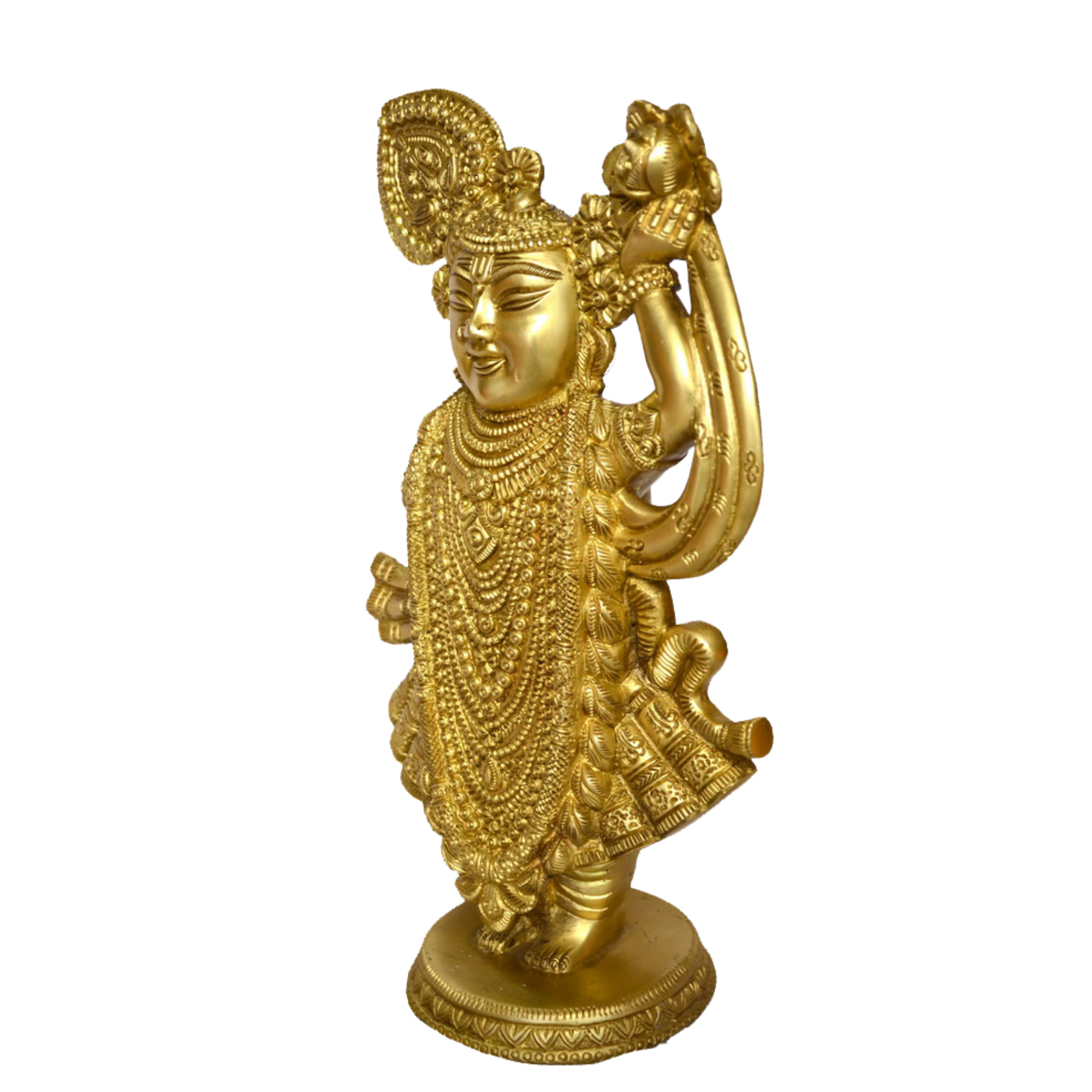 Design: Beautifully sculpted brass idol of Lord Shrinathji, showcasing intricate detailing and traditional craftsmanship.