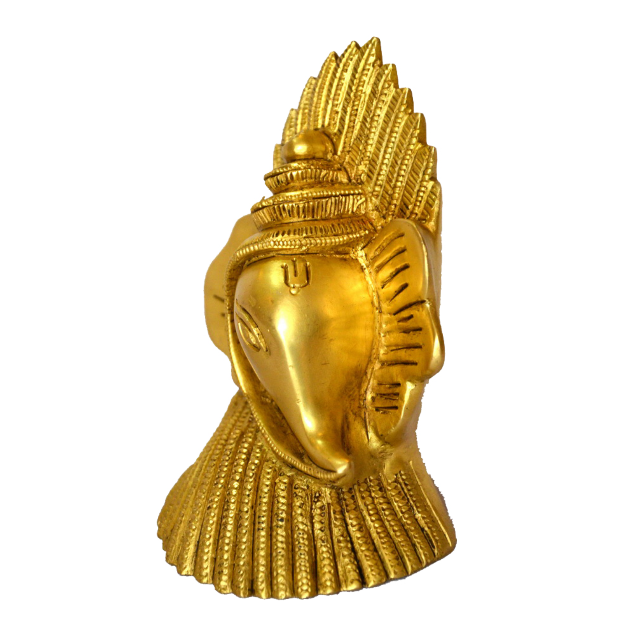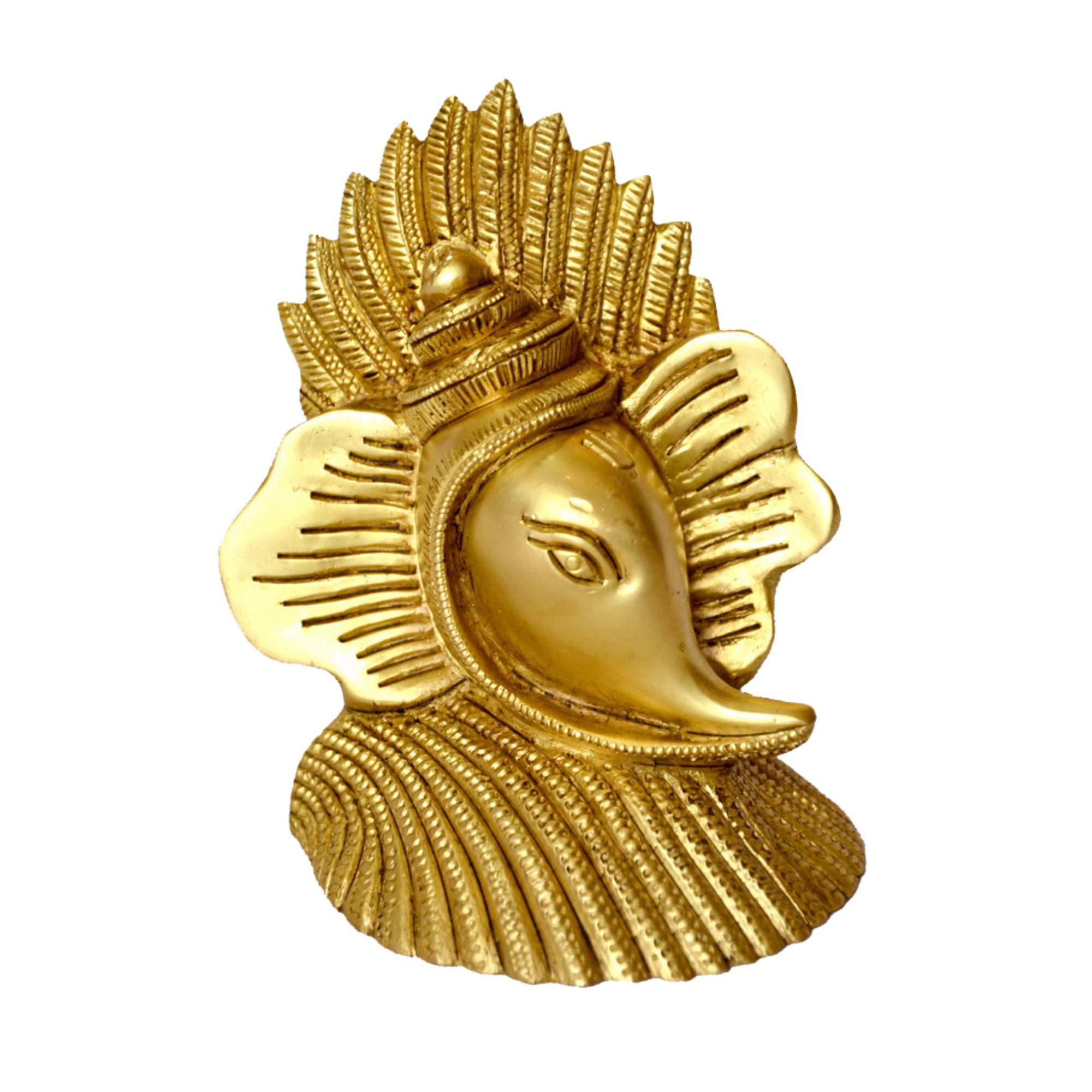 Design: Beautifully sculpted brass shankh featuring Lord Ganesha, symbolizing wisdom, positivity, and auspiciousness.