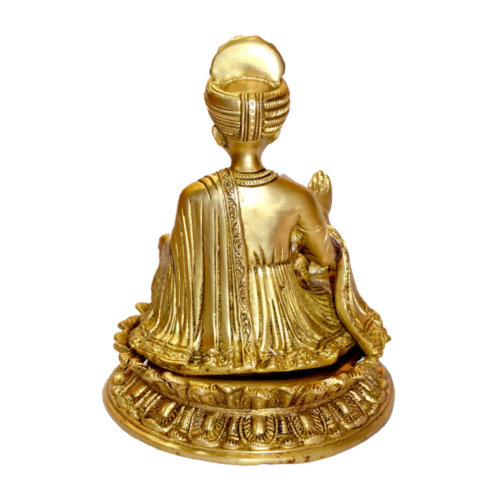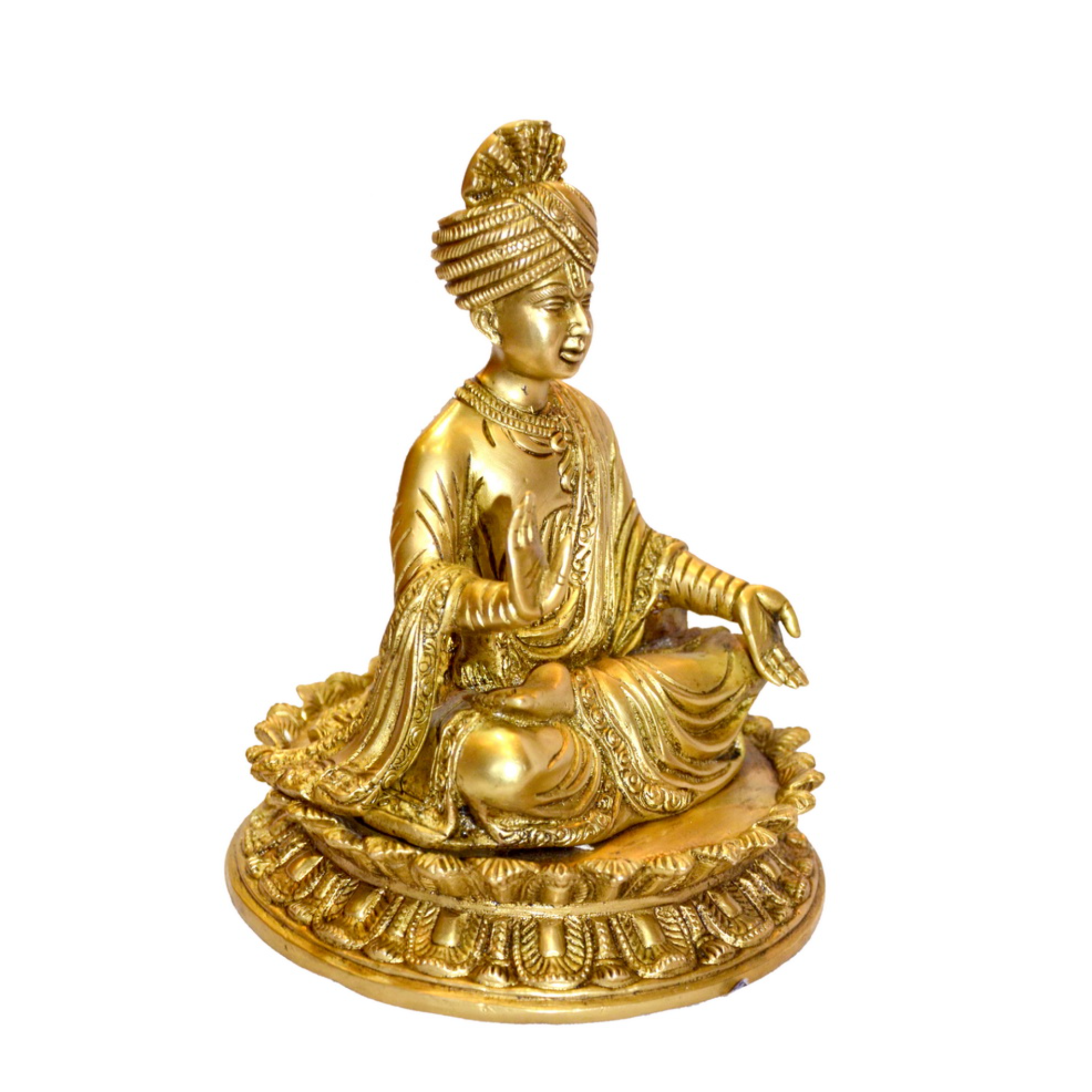 Design: Beautifully carved brass idol of Lord Swaminarayan, showcasing divine expression and traditional Indian artistry that radiates serenity and devotion.
