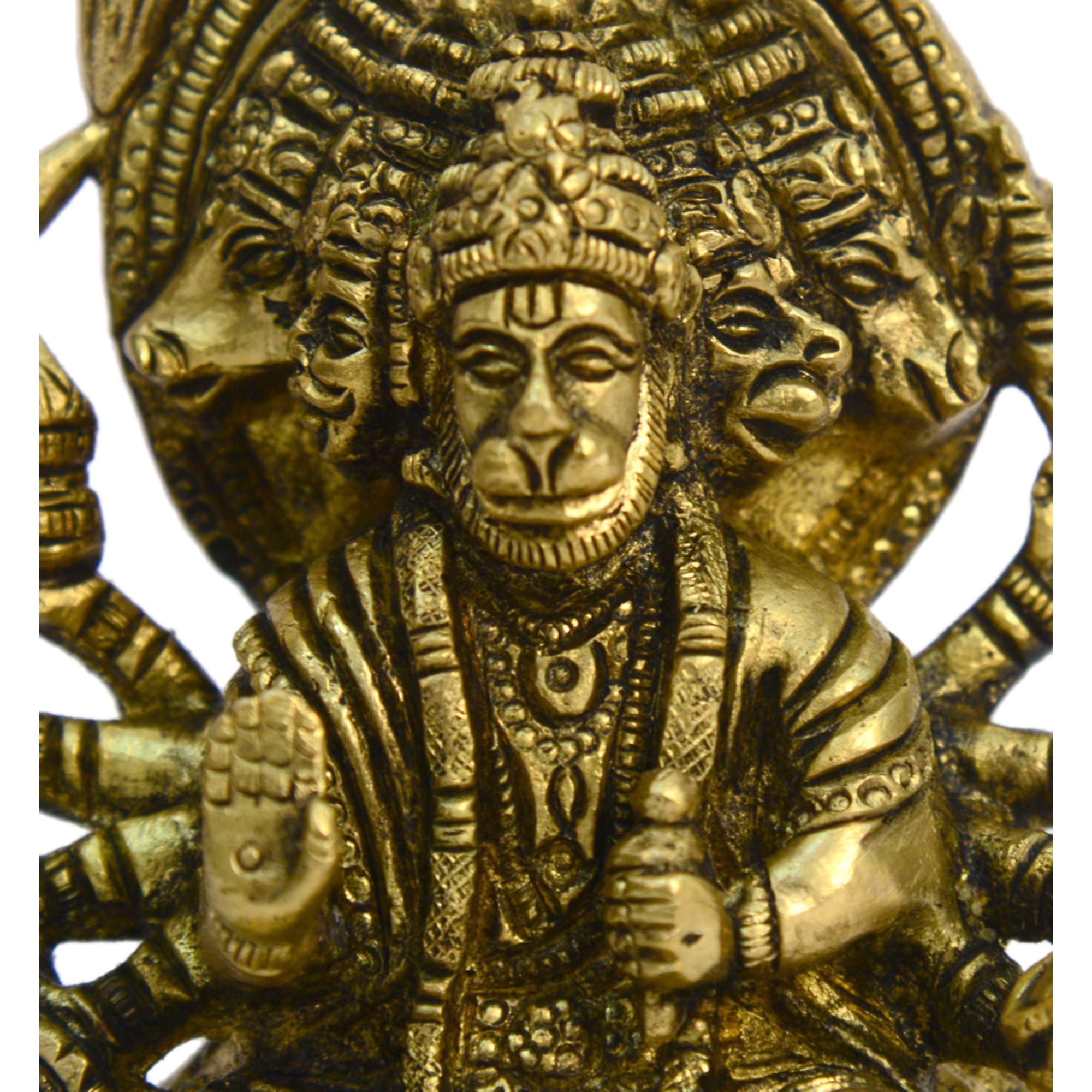 Brass Panchmukhi Hanuman Sitting – 3.2 x 2.4 x 3.2 Inch, 430 Gram. A finely handcrafted brass statue depicting Lord Hanuman in his five-faced form, symbolizing courage, devotion, and protection for your home or office.