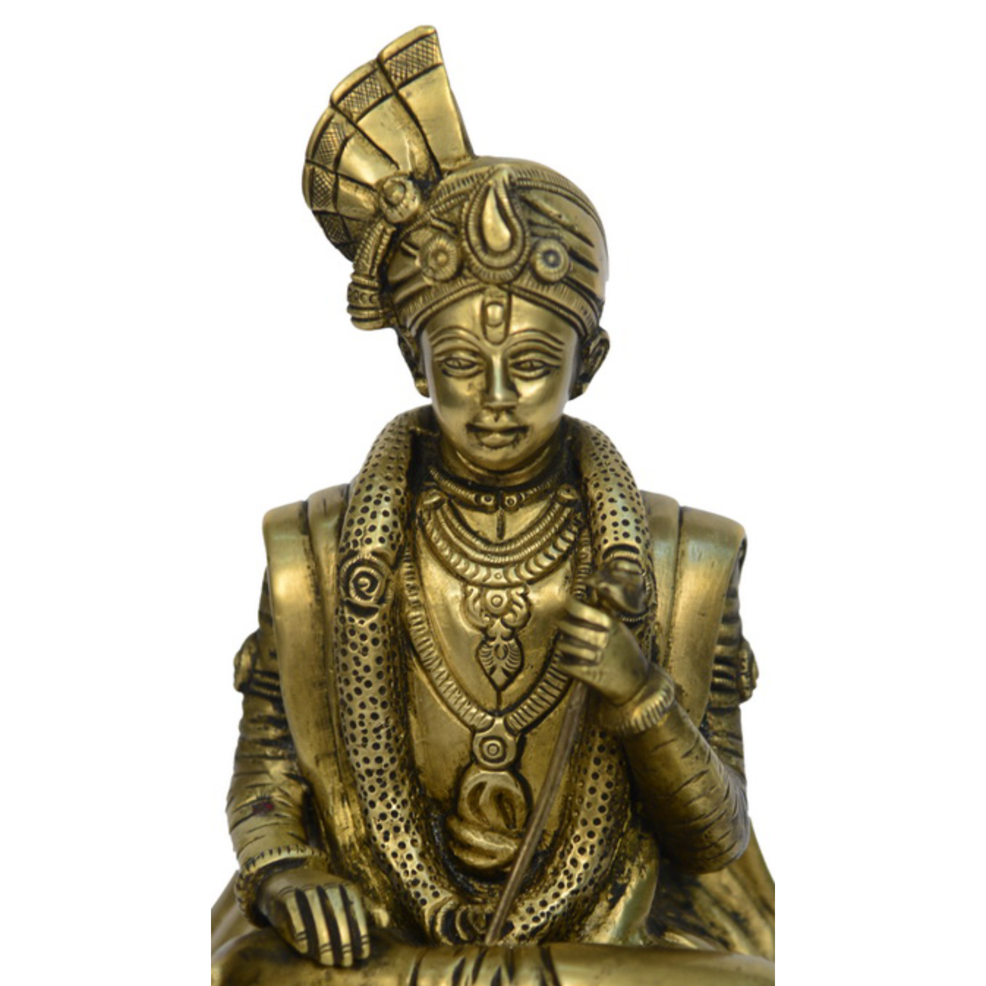 Design: Exquisitely handcrafted brass idol depicting Lord Sajanand Swami, reflecting serenity, devotion, and spiritual significance.