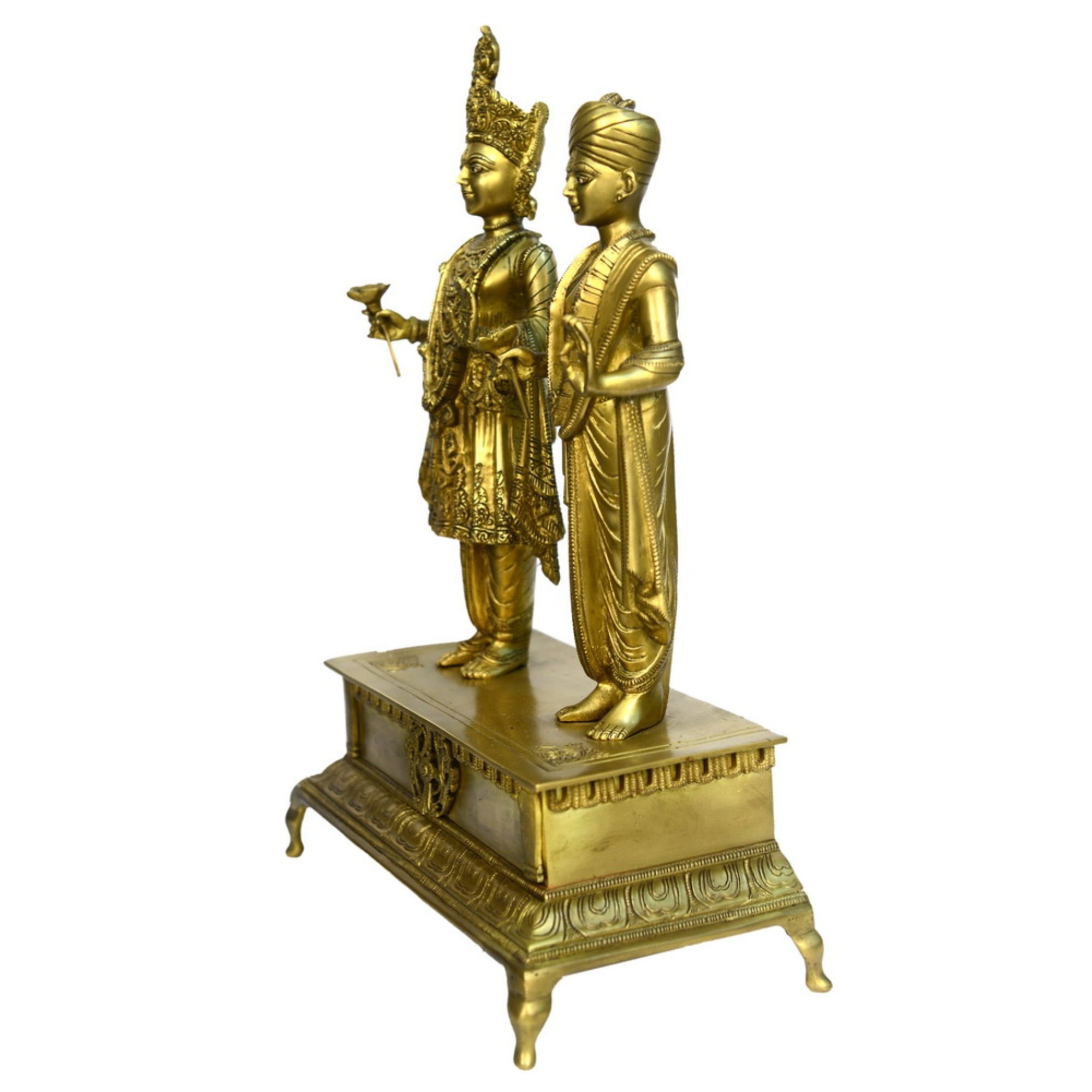 Brass KBHarat Haat™ Big Lord Swaminarayan Pair with Bajath – 11.5 x 6 x 17 Inch, 8.06 Kg. A finely handcrafted brass idol of Lord Swaminarayan, ideal for devotional décor, pooja rituals, and religious gifting.