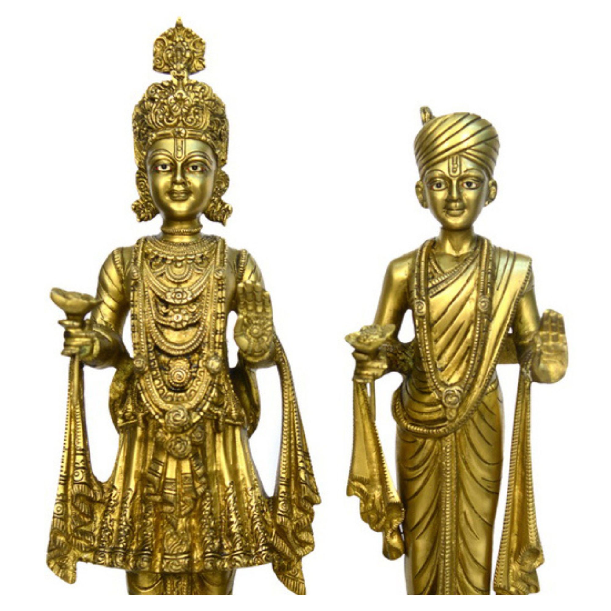 Design: Exquisitely handcrafted brass statues depicting Lord Swaminarayan with Bajath, radiating spiritual elegance and devotion.