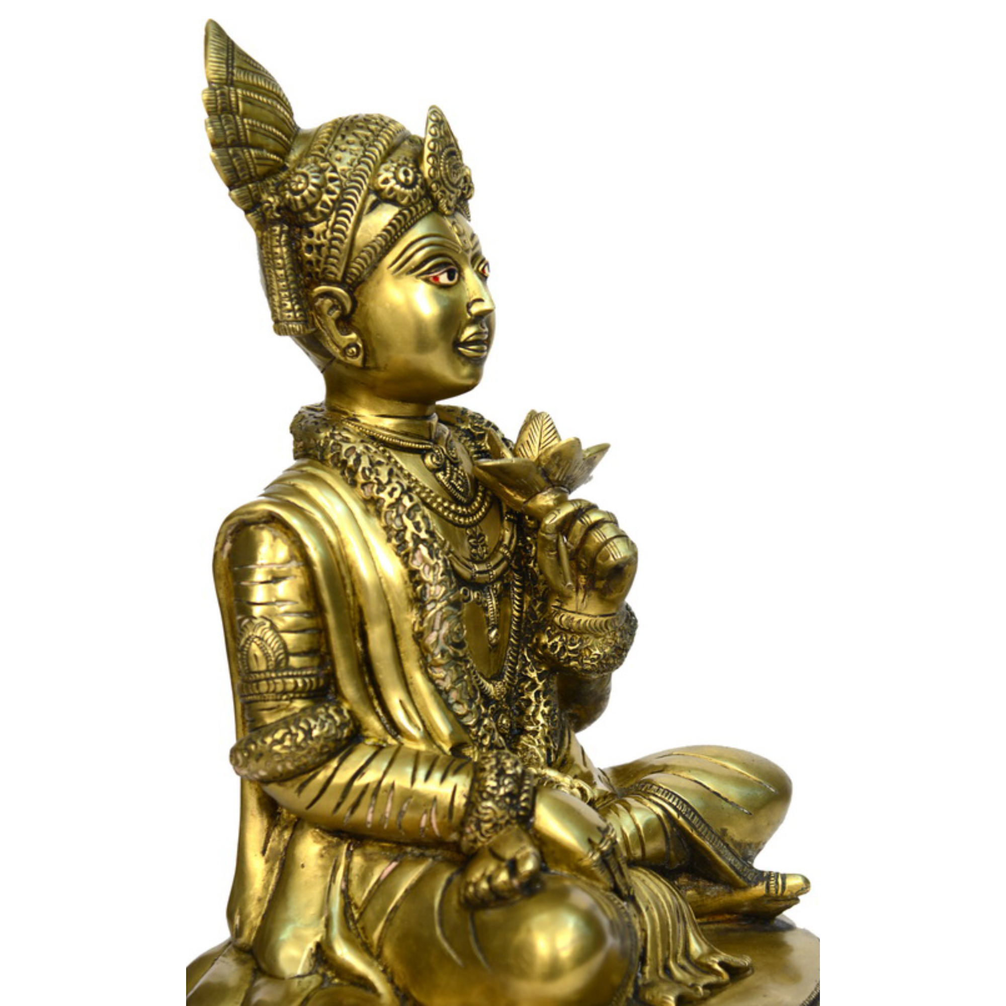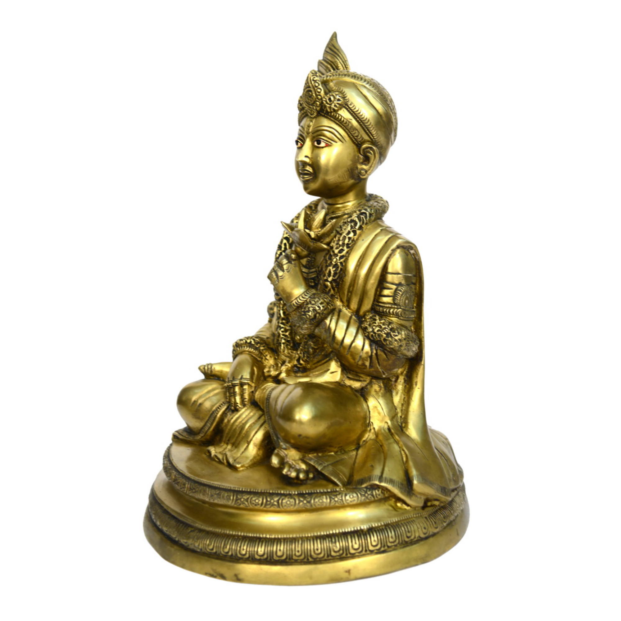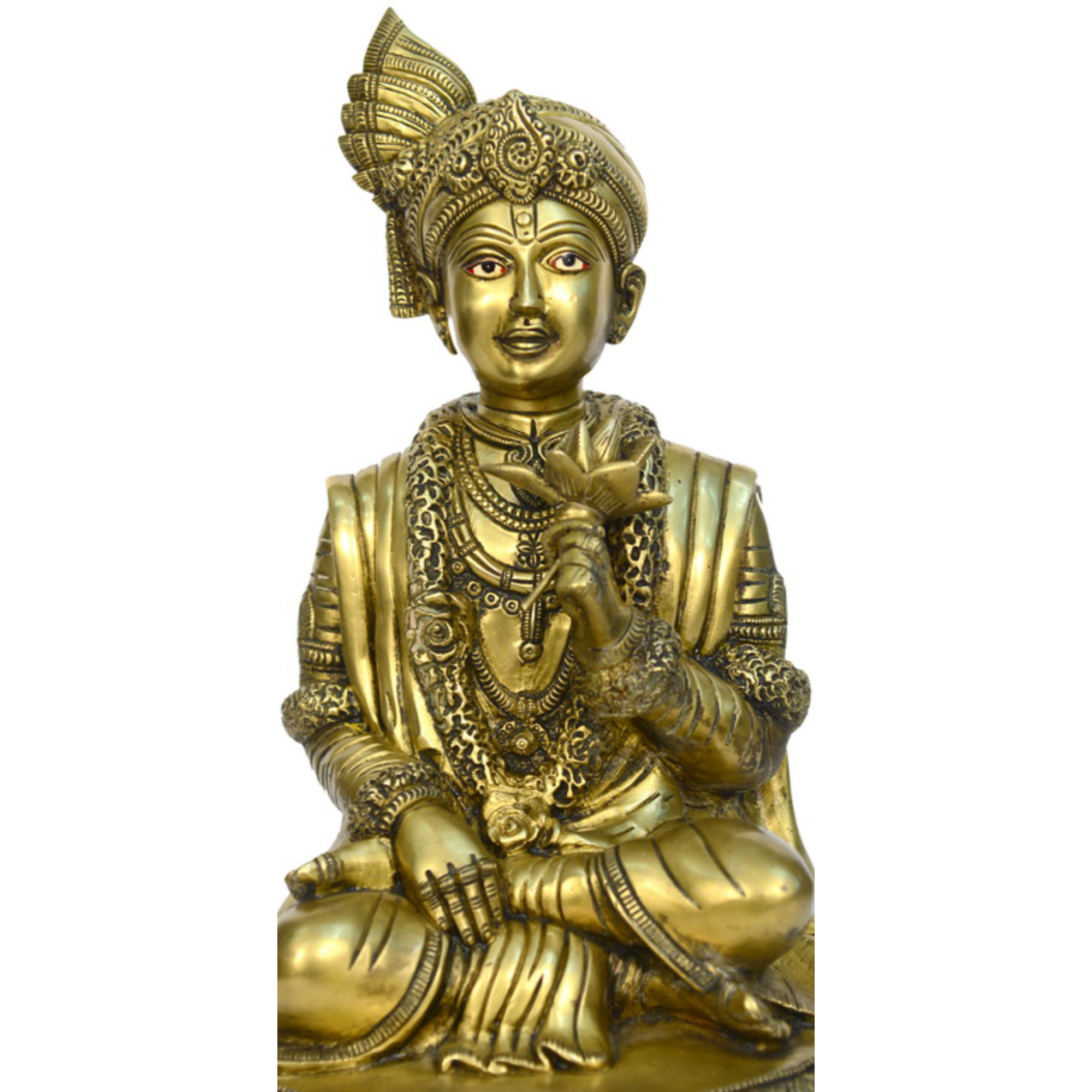 Design: Exquisitely handcrafted brass statue depicting Lord Sajanand Swami in a serene sitting posture, symbolizing peace, devotion, and spiritual grace.