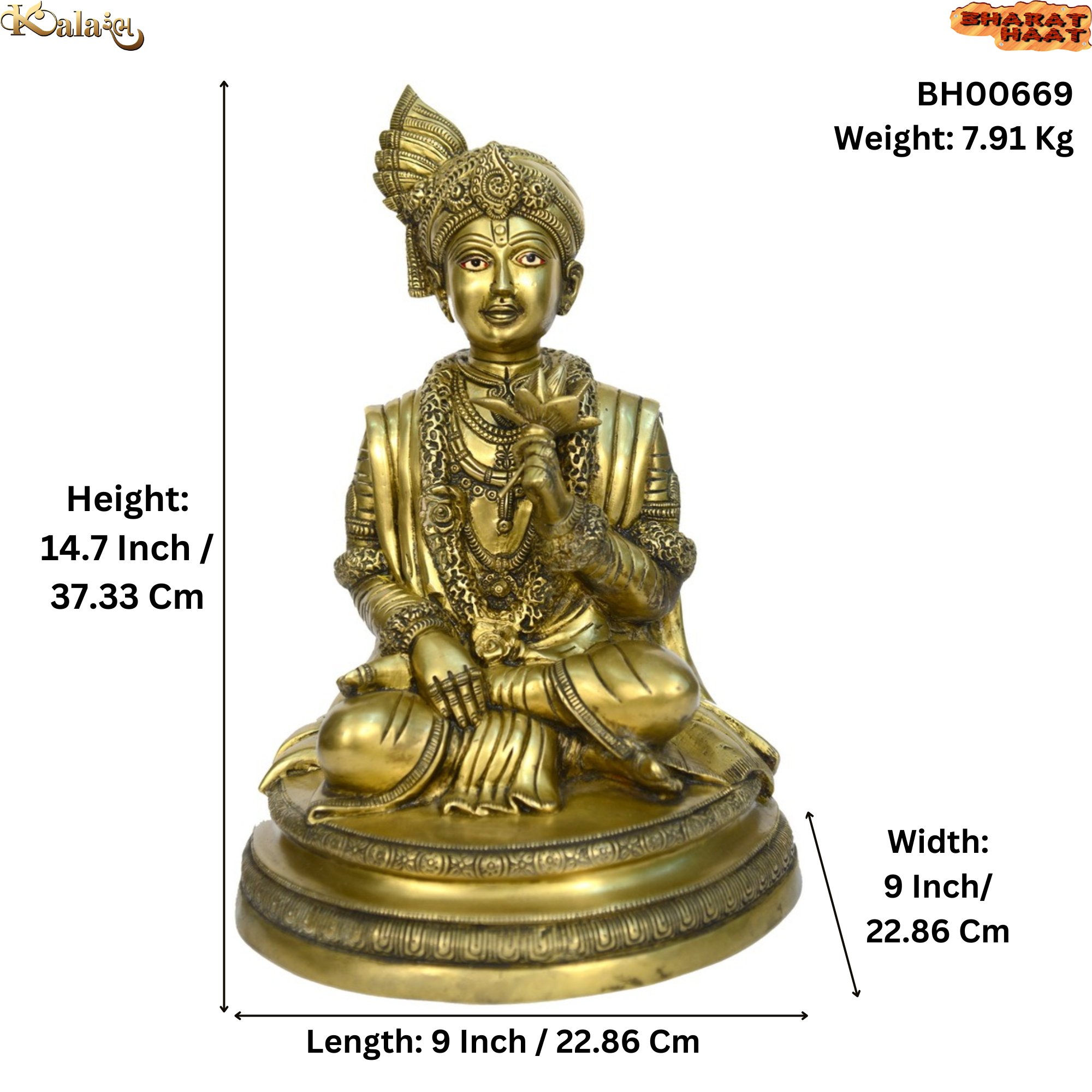 Brass KBHarat Haat™ Lord Sajanand Swami Sitting Statue – 9 x 9 x 14.7 Inch, 7.91 Kg. A beautifully handcrafted brass idol of Lord Sajanand Swami in a sitting posture, ideal for devotional décor, pooja rituals, and gifting.