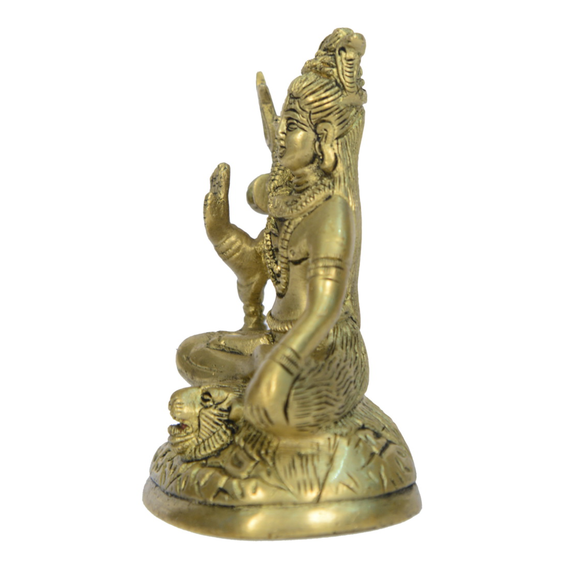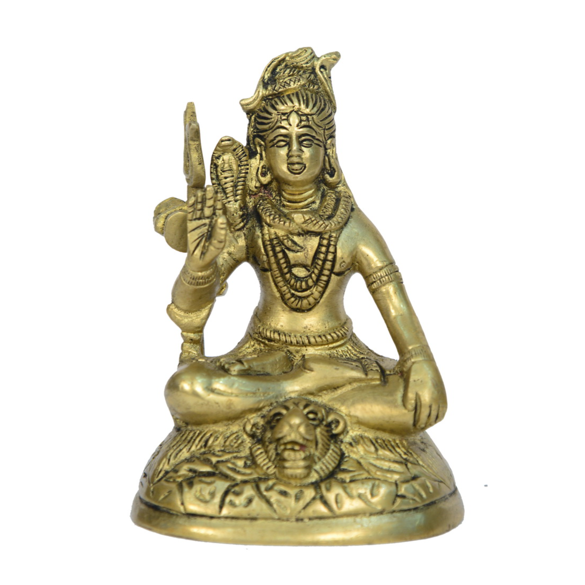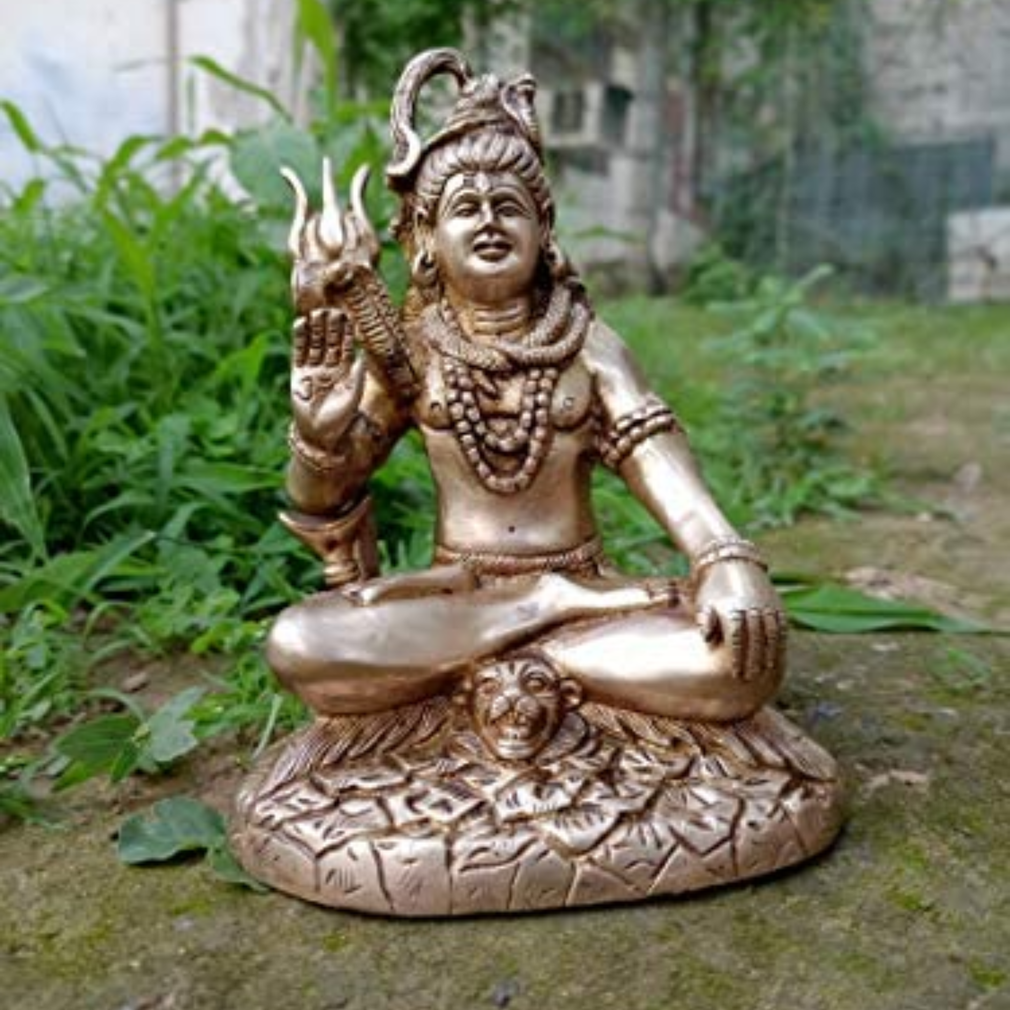 Intricate Craftsmanship – Finely detailed brass statue of Lord Shiva in a sitting pose.