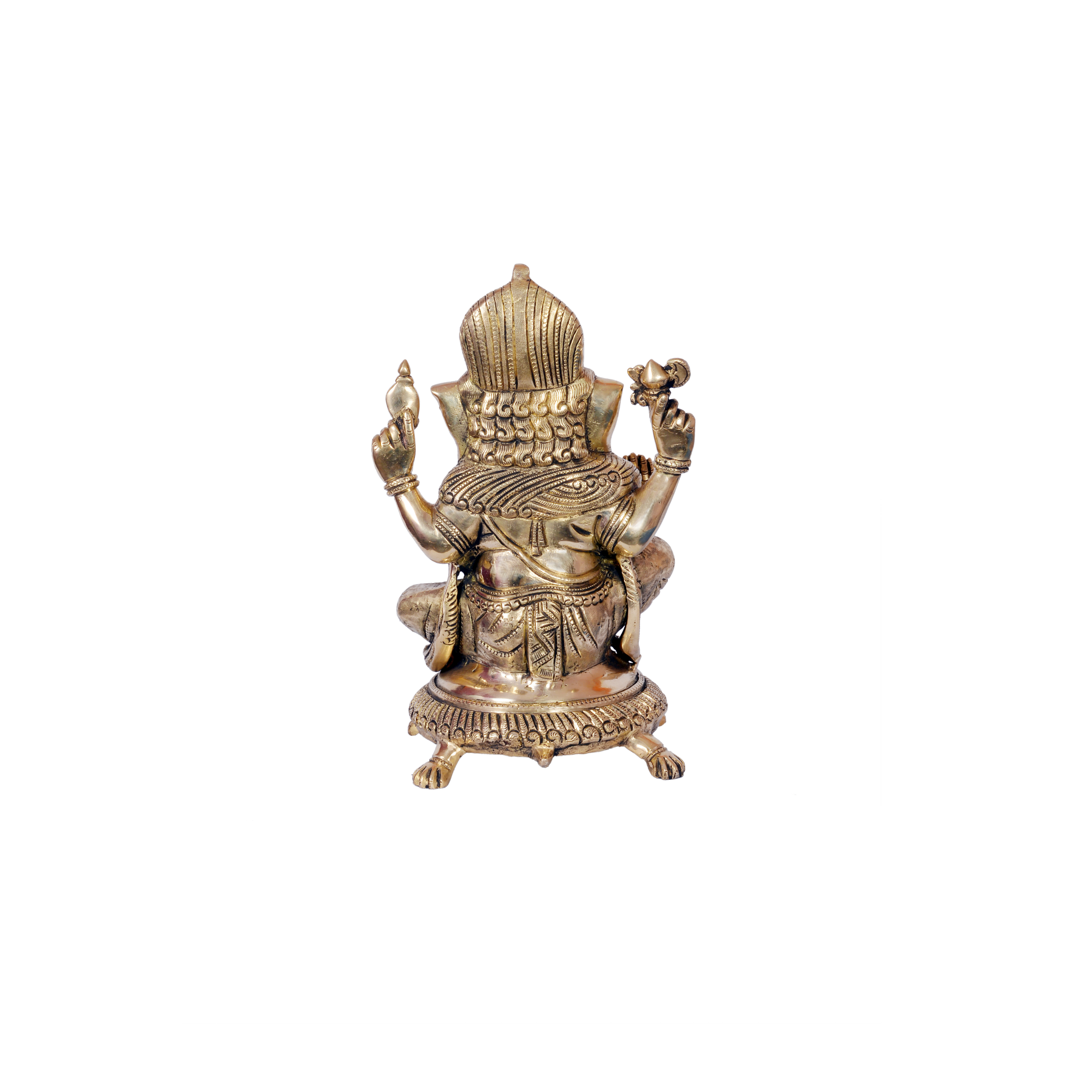Intricate Craftsmanship – Detailed brass idol capturing Ganesha seated on a tortoise.