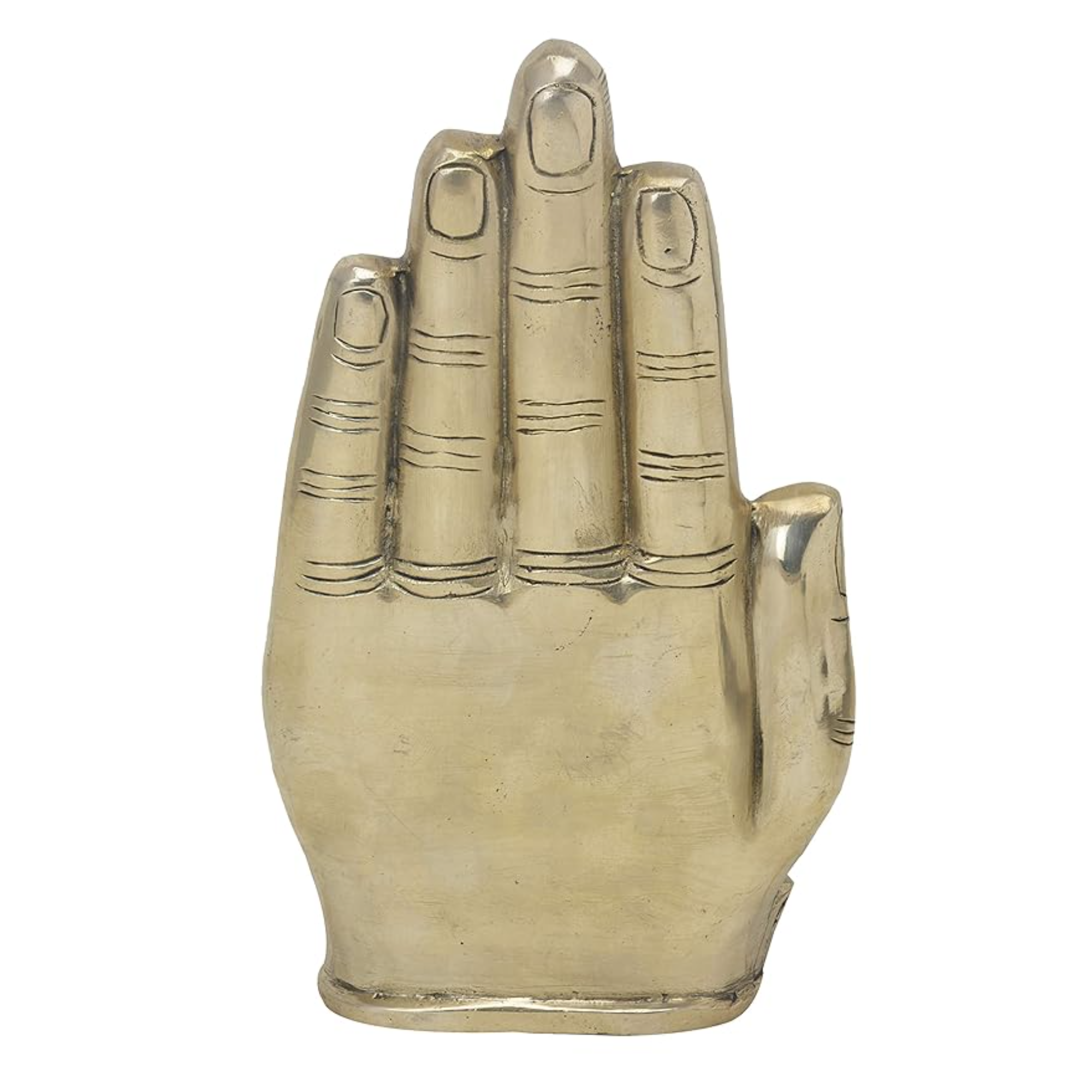 Brass Hand Buddha (5 x 2.3 x 9 Inch, 2.18 Kg) – symbolizes peace, protection, and positivity; ideal for home, office, or gifting.