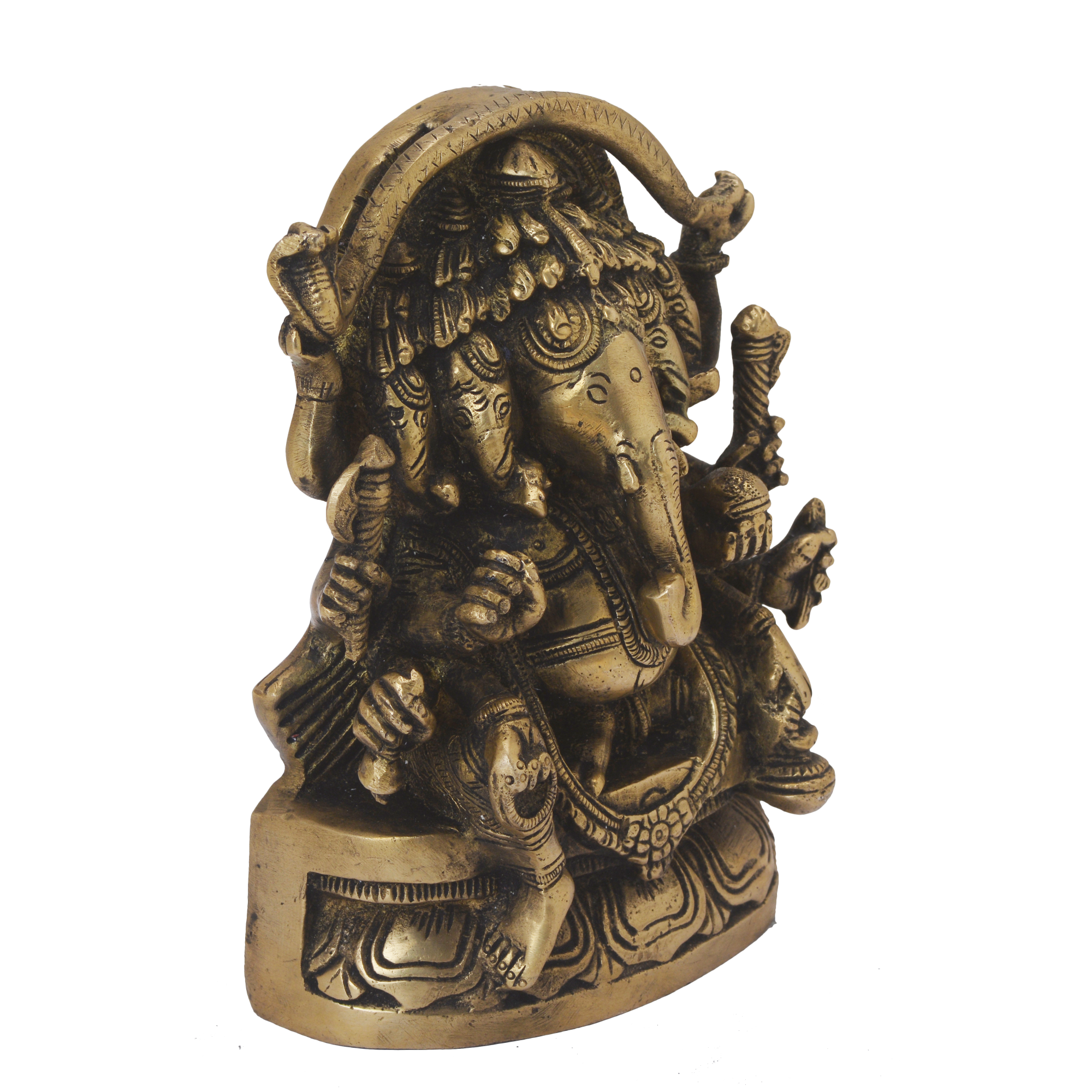 Brass Panchmukhi Ganesh (4.1 x 2 x 5.8 Inch, 1.48 Kg) – Handcrafted five-faced Ganesh idol representing wisdom, prosperity, and protection; perfect for pooja or home décor.