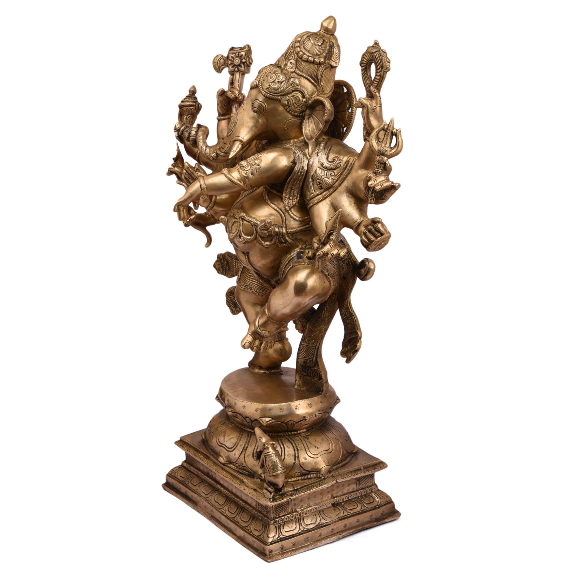 Brass Ten-Hand Dancing Ganesh (17.3 x 8.5 x 26.5 Inch, 24.07 Kg) – Handcrafted brass statue of Lord Ganesh in a majestic dancing pose with ten arms; ideal for home temples, large décor spaces, or gifting.