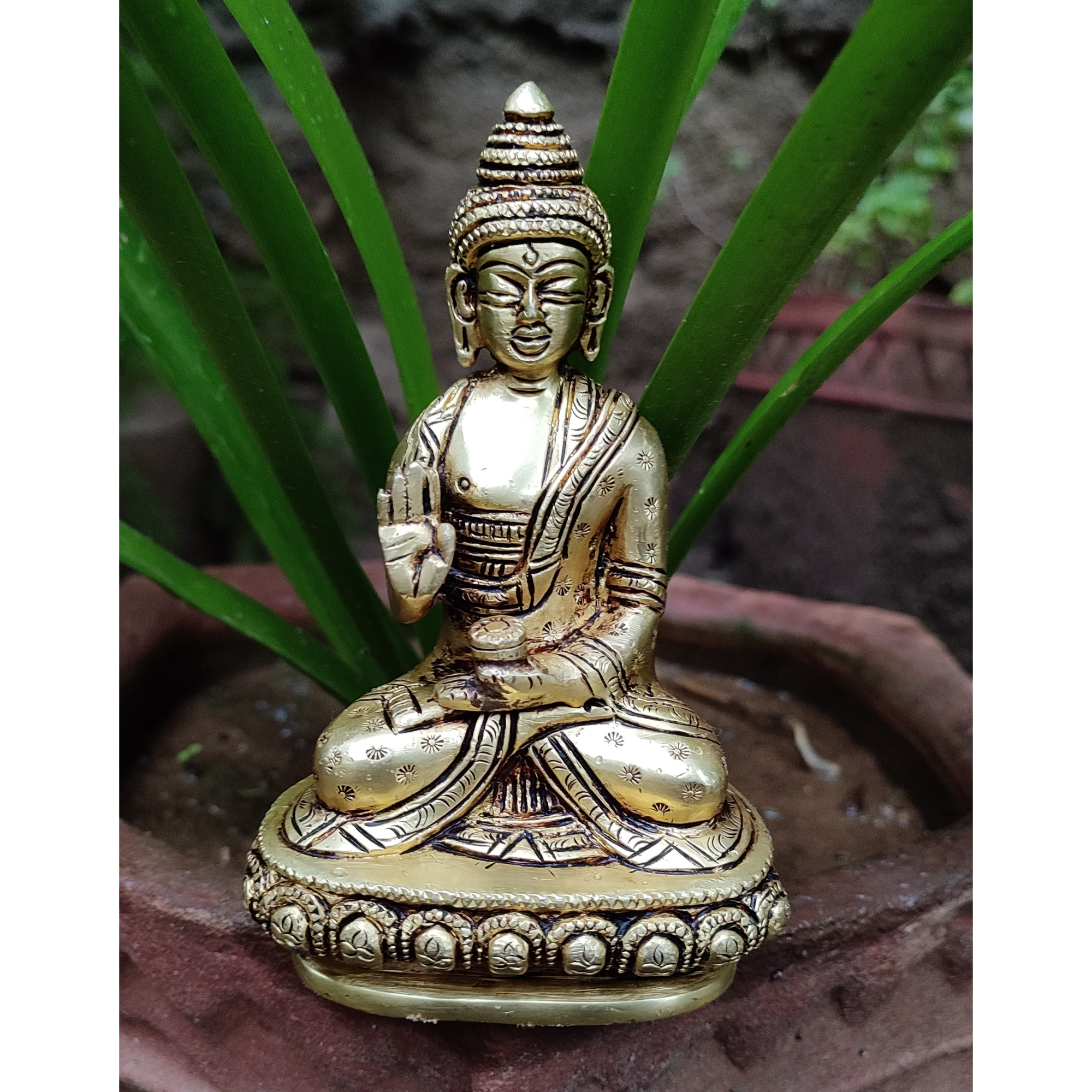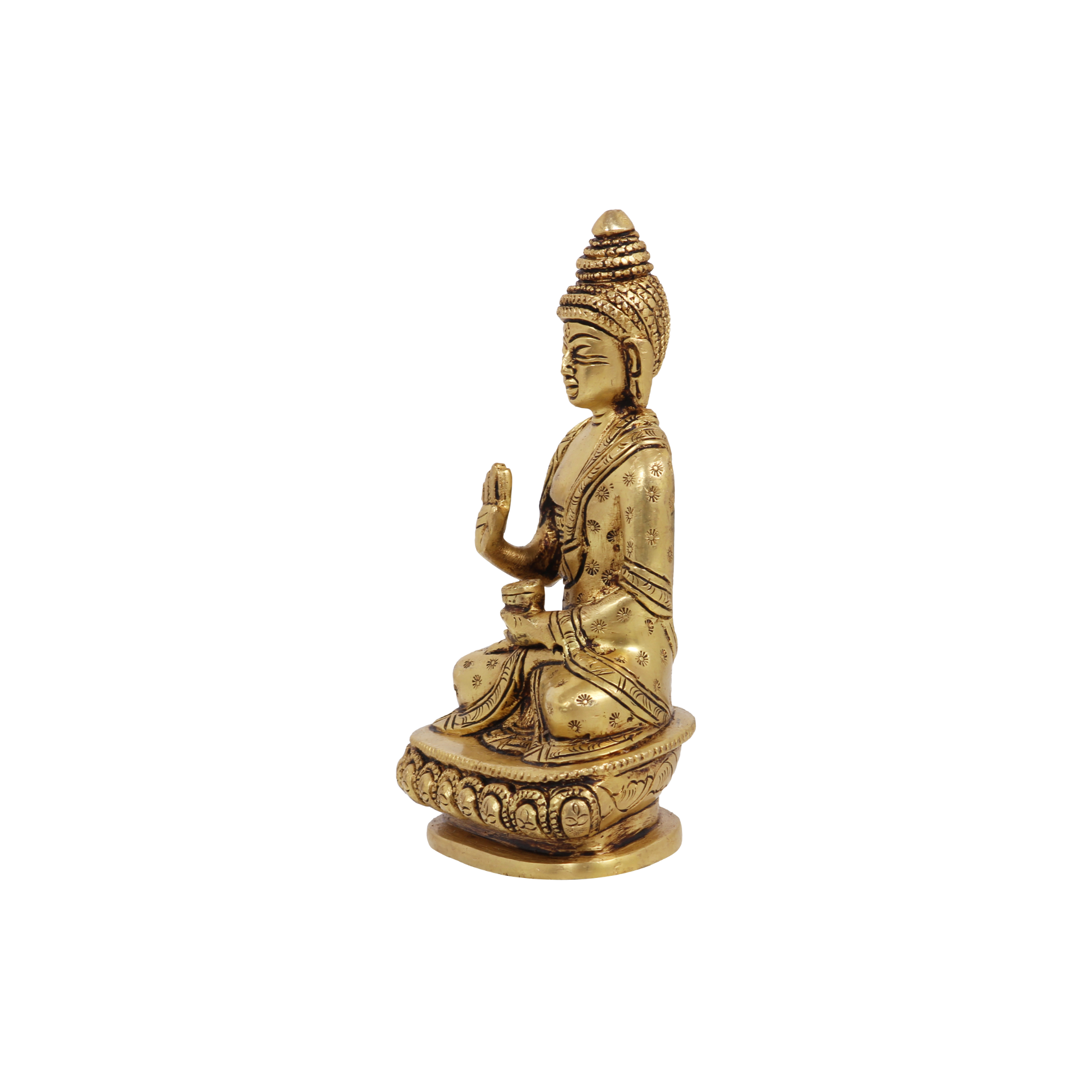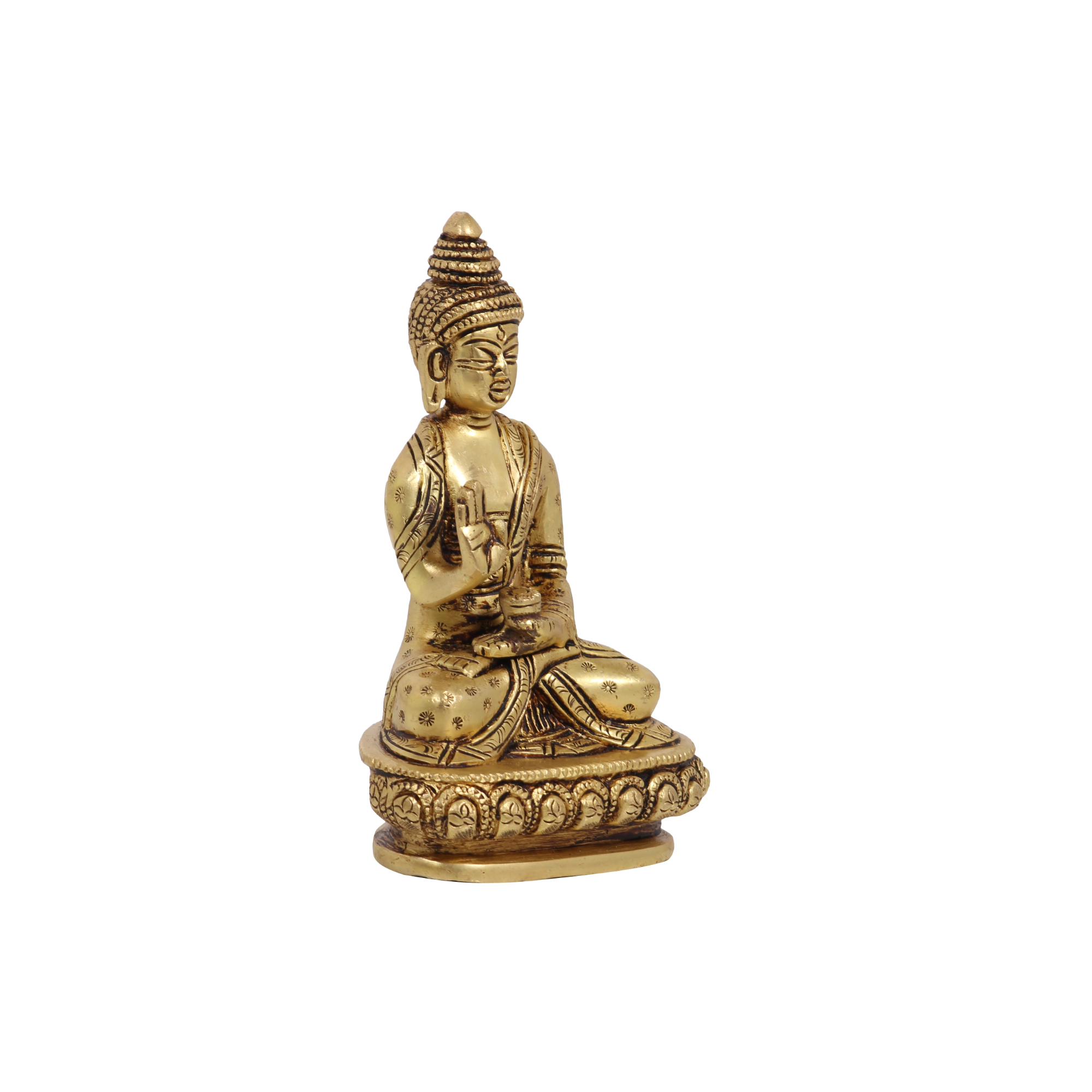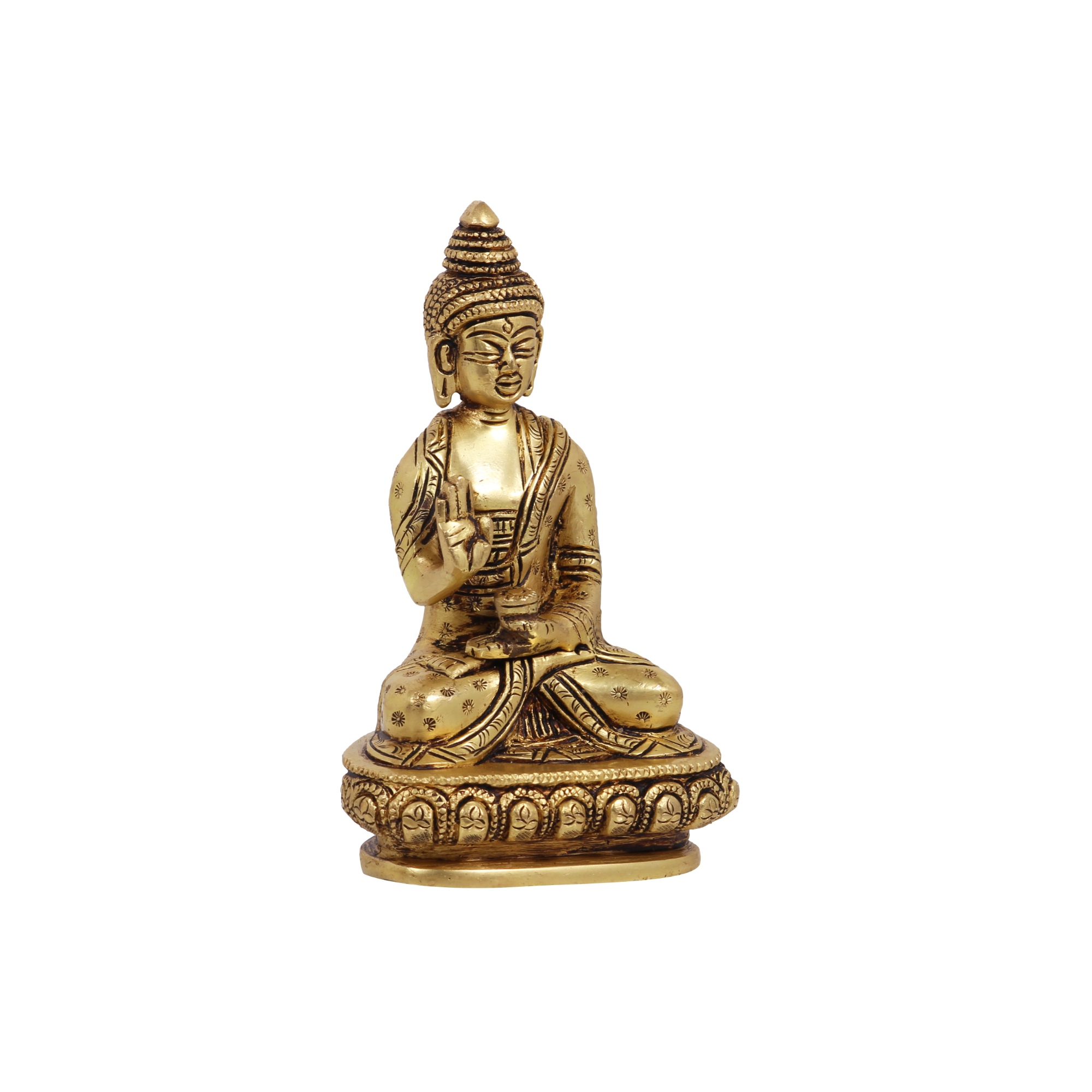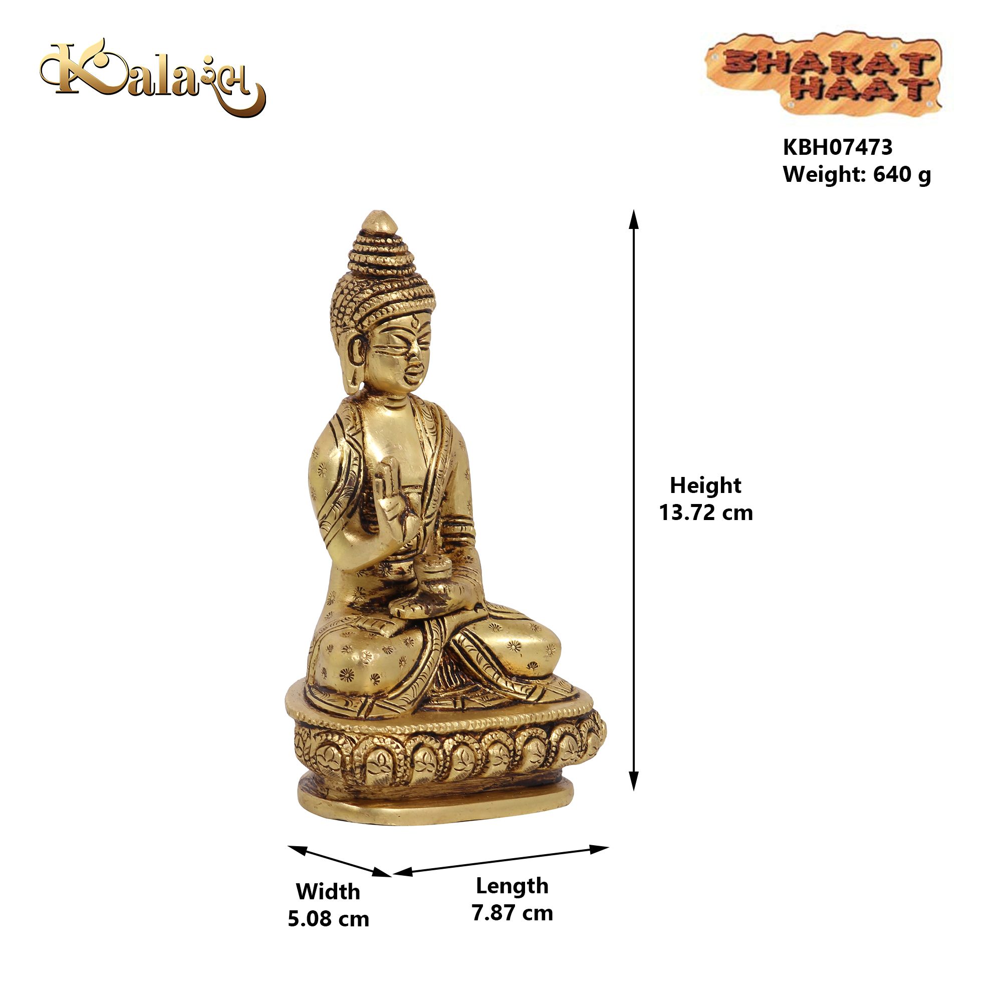 Design:The Brass Buddha statue showcases Lord Buddha in a calm meditative posture, radiating serenity and divine wisdom.