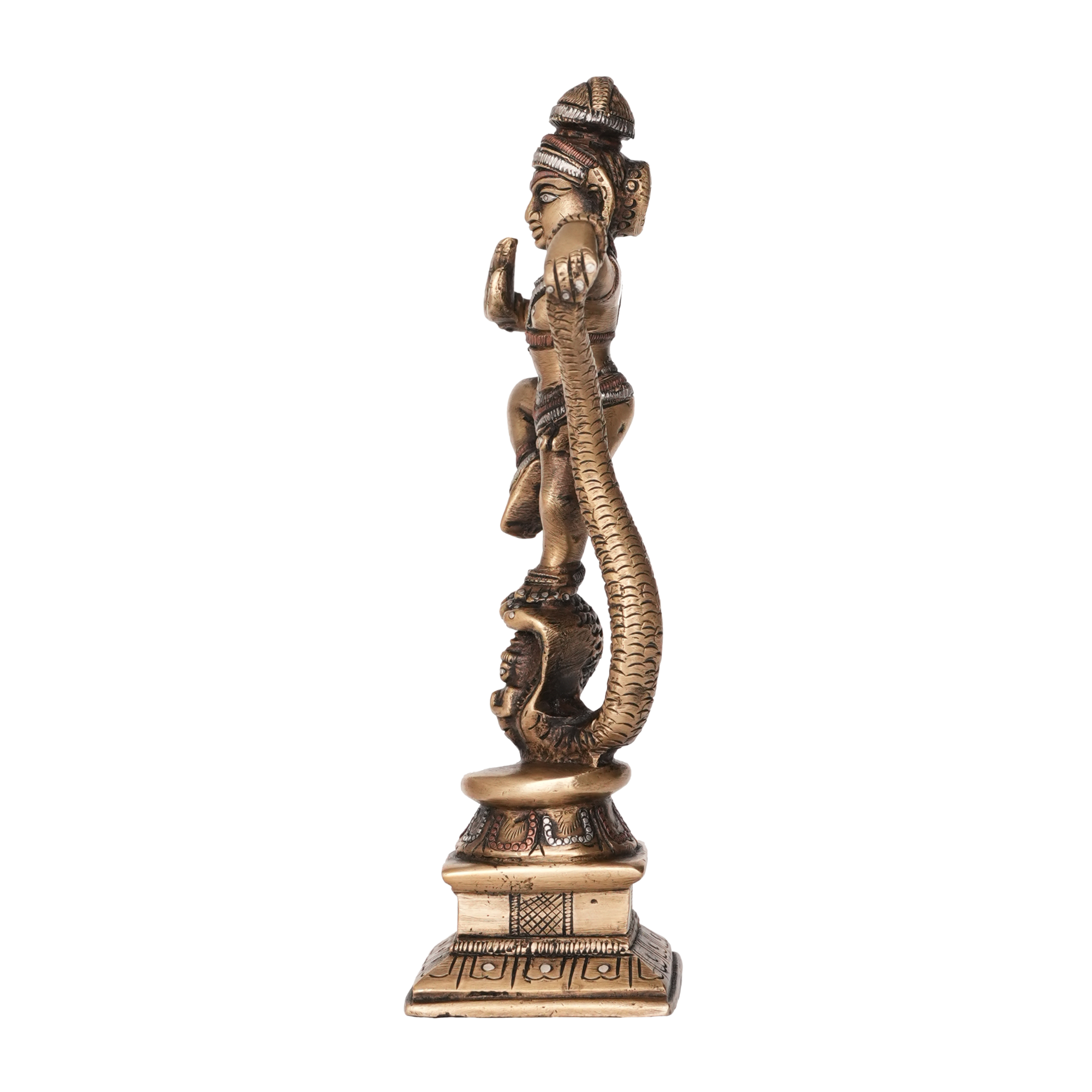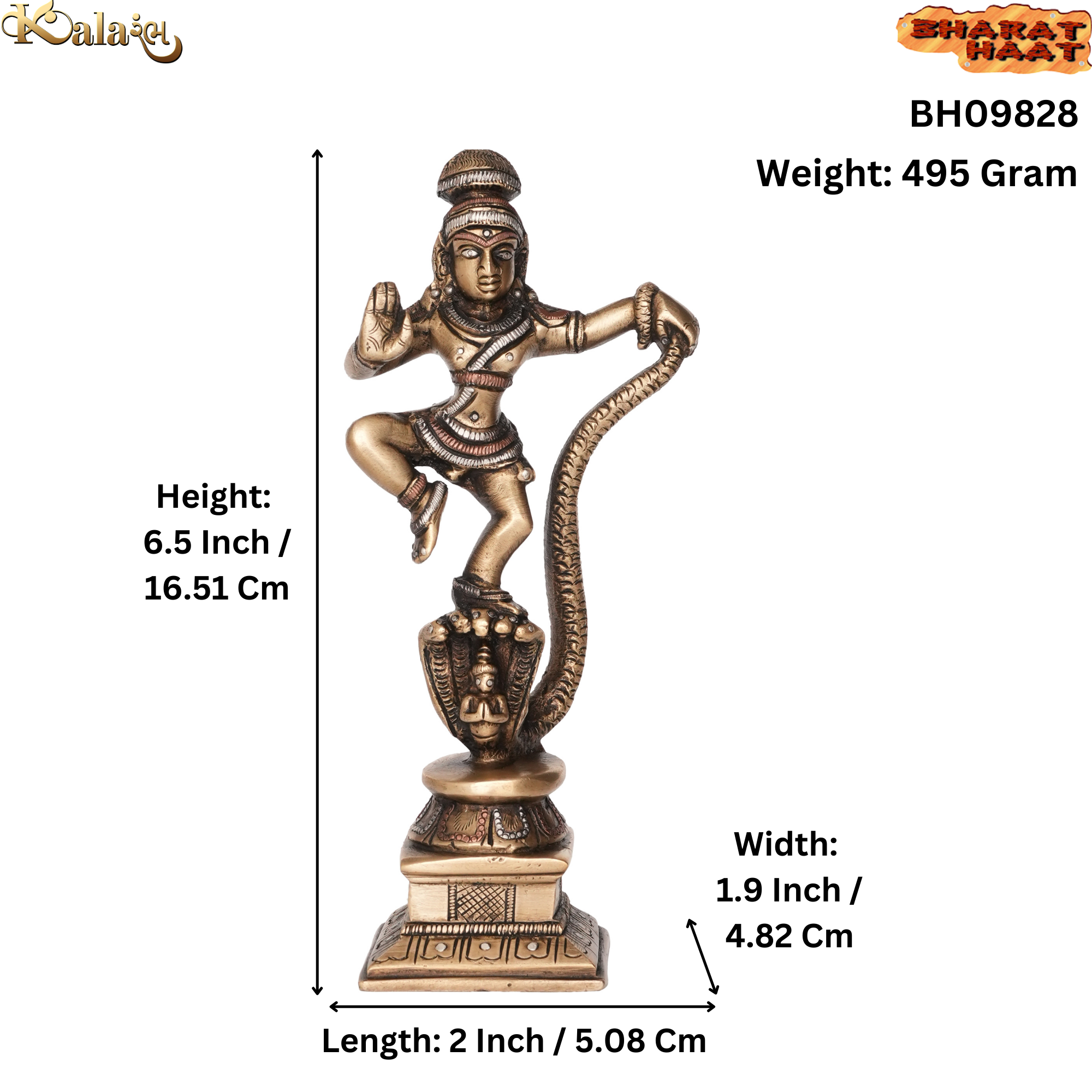 Made from premium-quality solid brass, the idol carries a smooth antique finish that enhances its spiritual aura. With dimensions of 2 x 1.9 x 6.5 Inch (5.08 x 4.82 x 16.51 Cm) and a weight of 495 grams, it stands tall and graceful, making it perfect for your pooja room, living space, or work desk.
