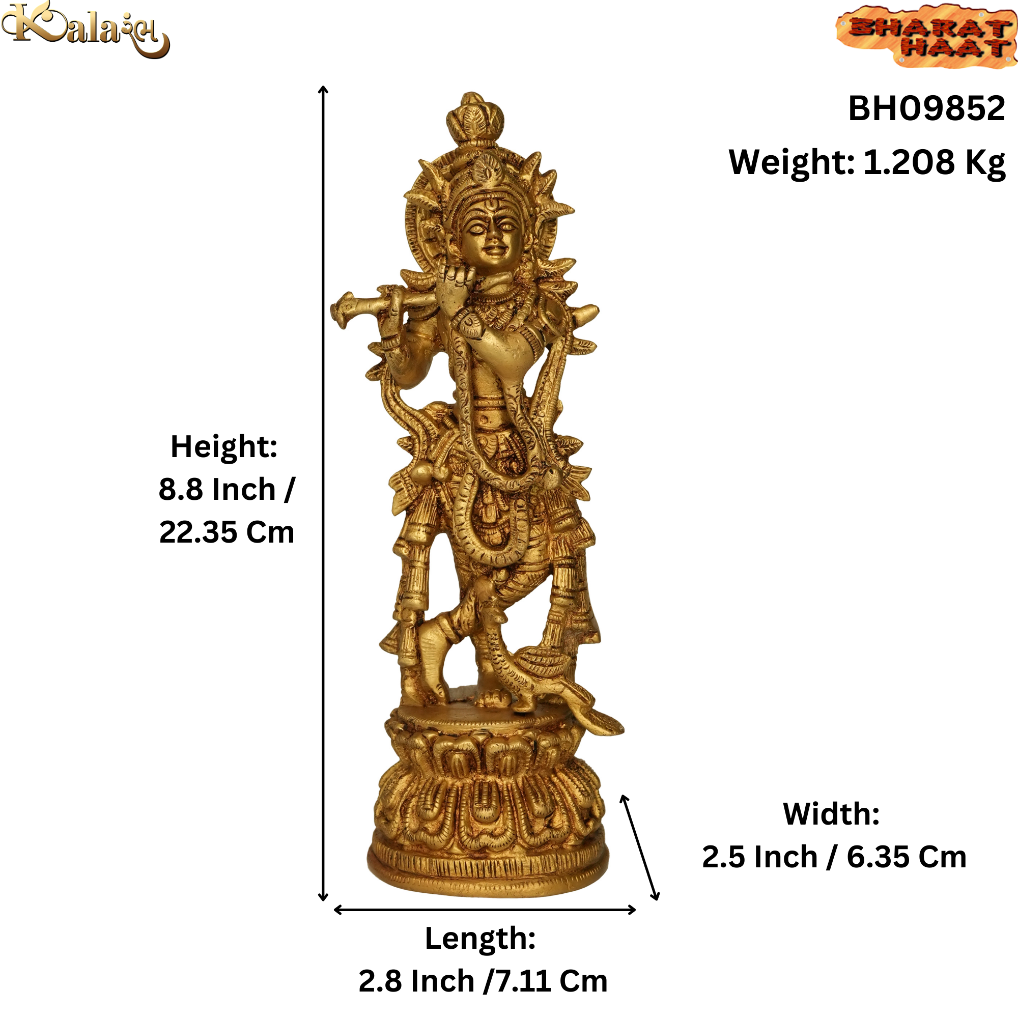 Brass Lord Krishna Idol – The Eternal Symbol of Love, Music & Divine Bliss