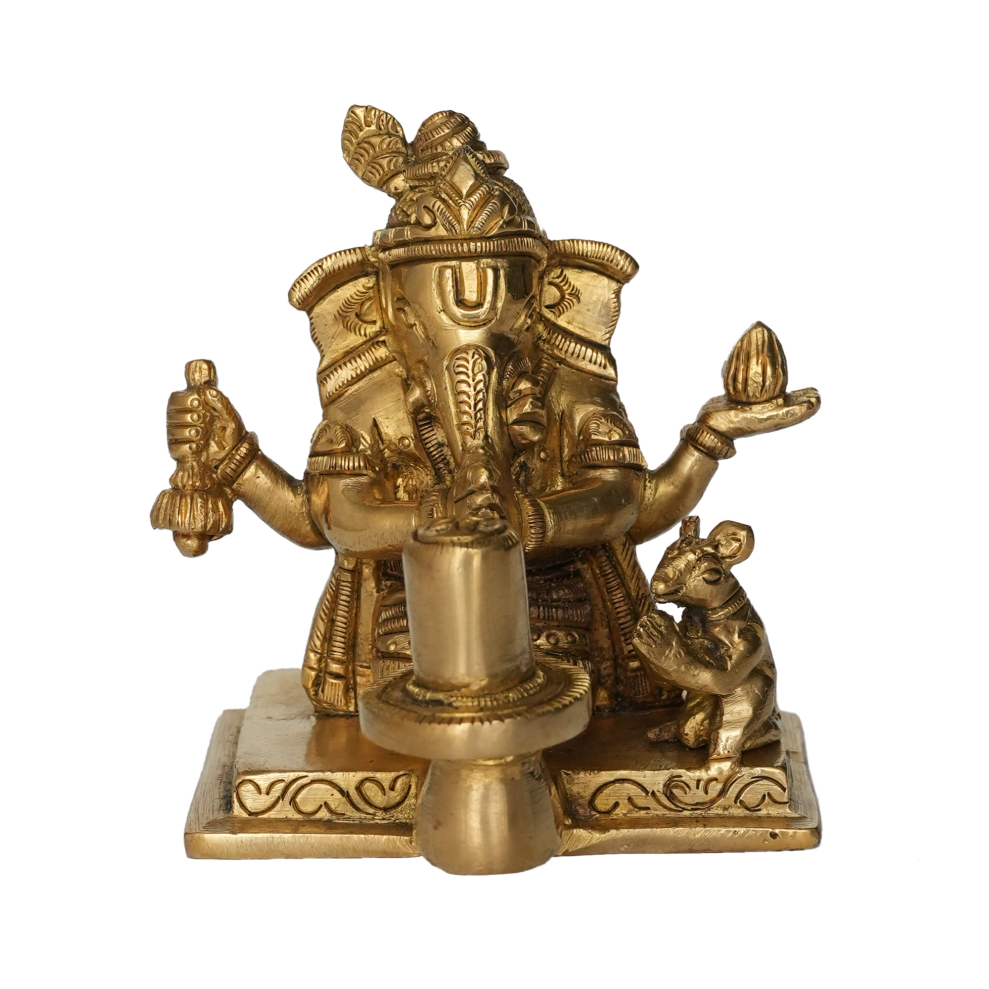 Depicts Lord Ganesha worshipping the sacred Shivalinga