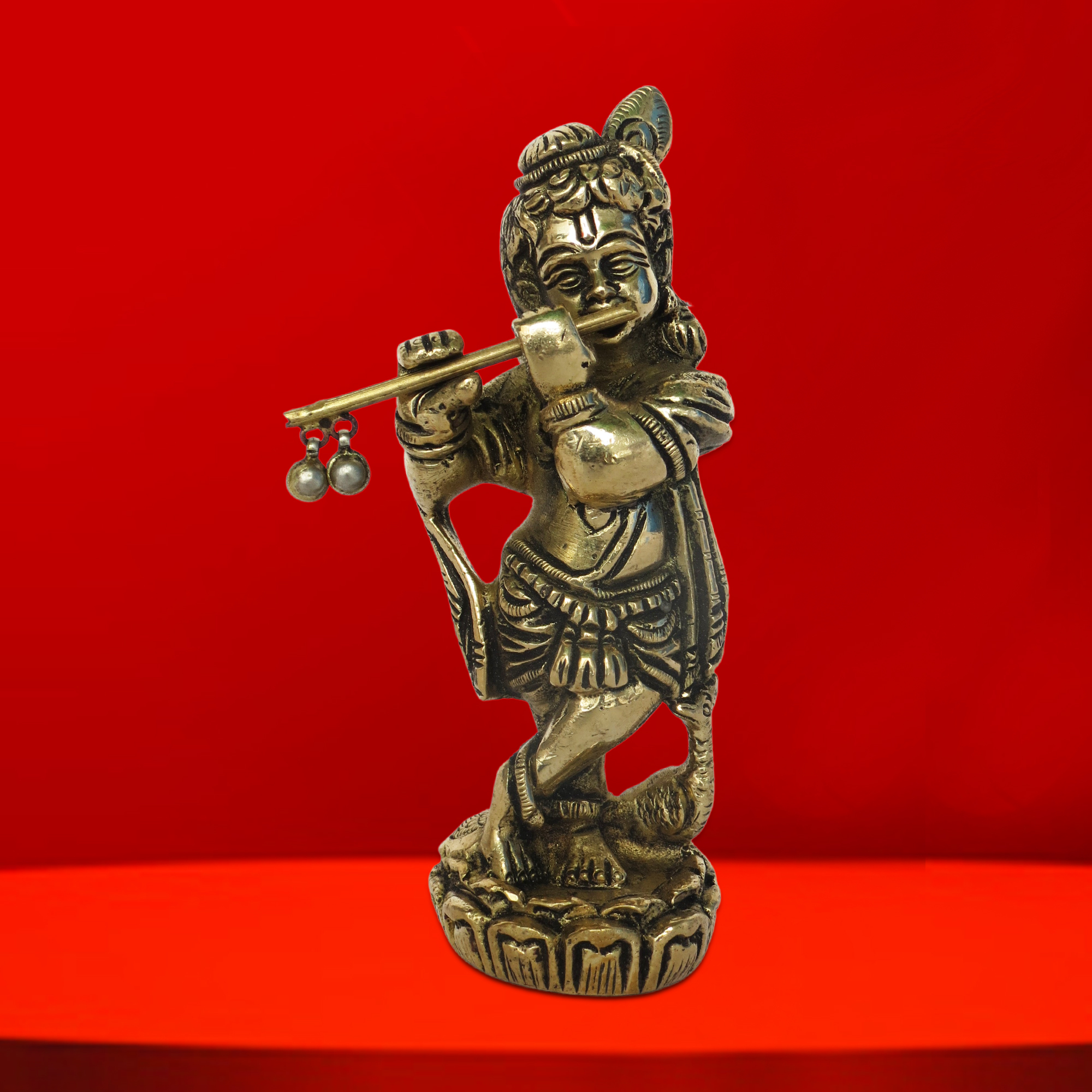 Design: Elegant idol of Lord Krishna standing gracefully with his flute, symbolizing peace, love, and divine harmony.
