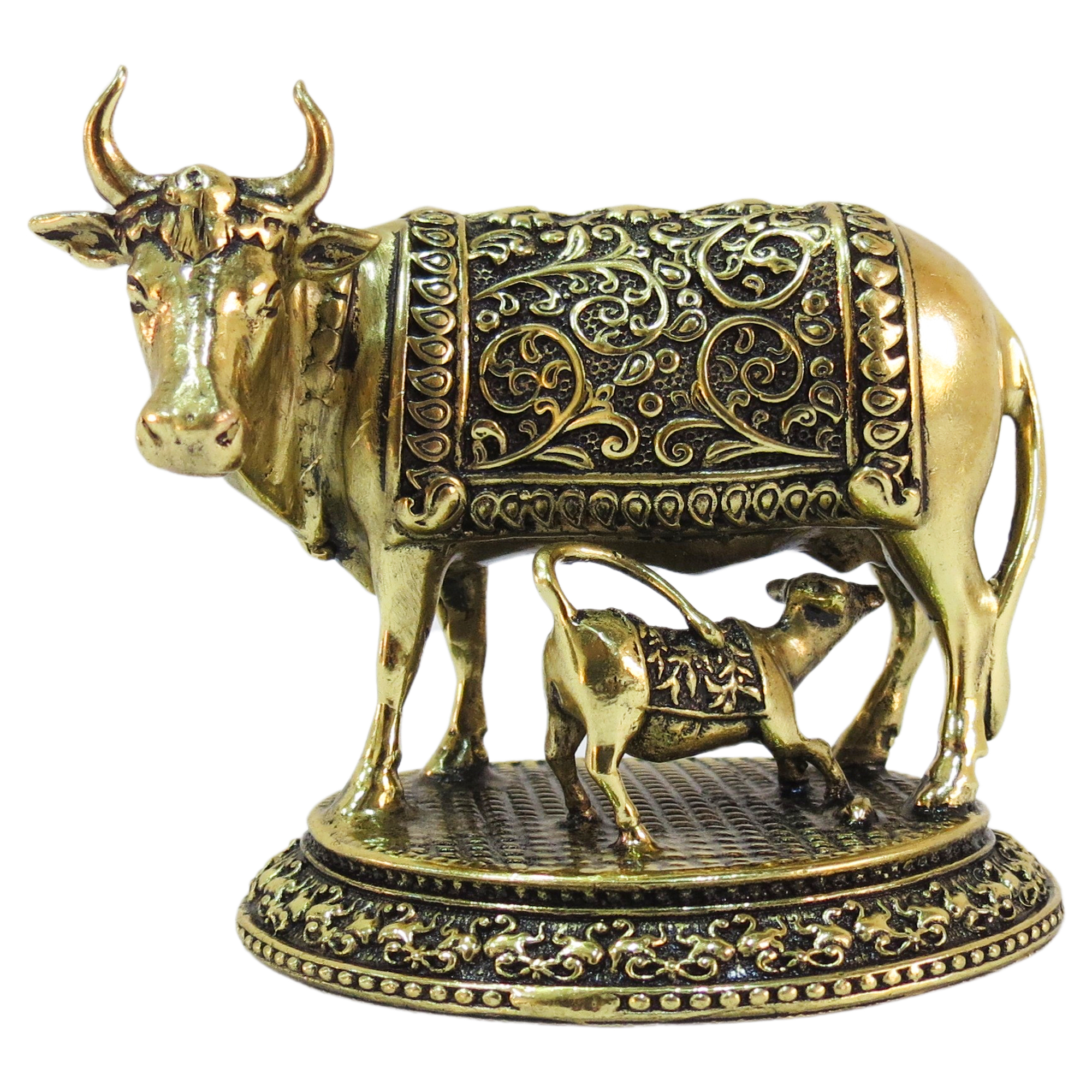 Beautifully handcrafted Brass Cow with Calf Idol representing Kamdhenu — the sacred mother of all cows, bringing wealth and well-being to your space.