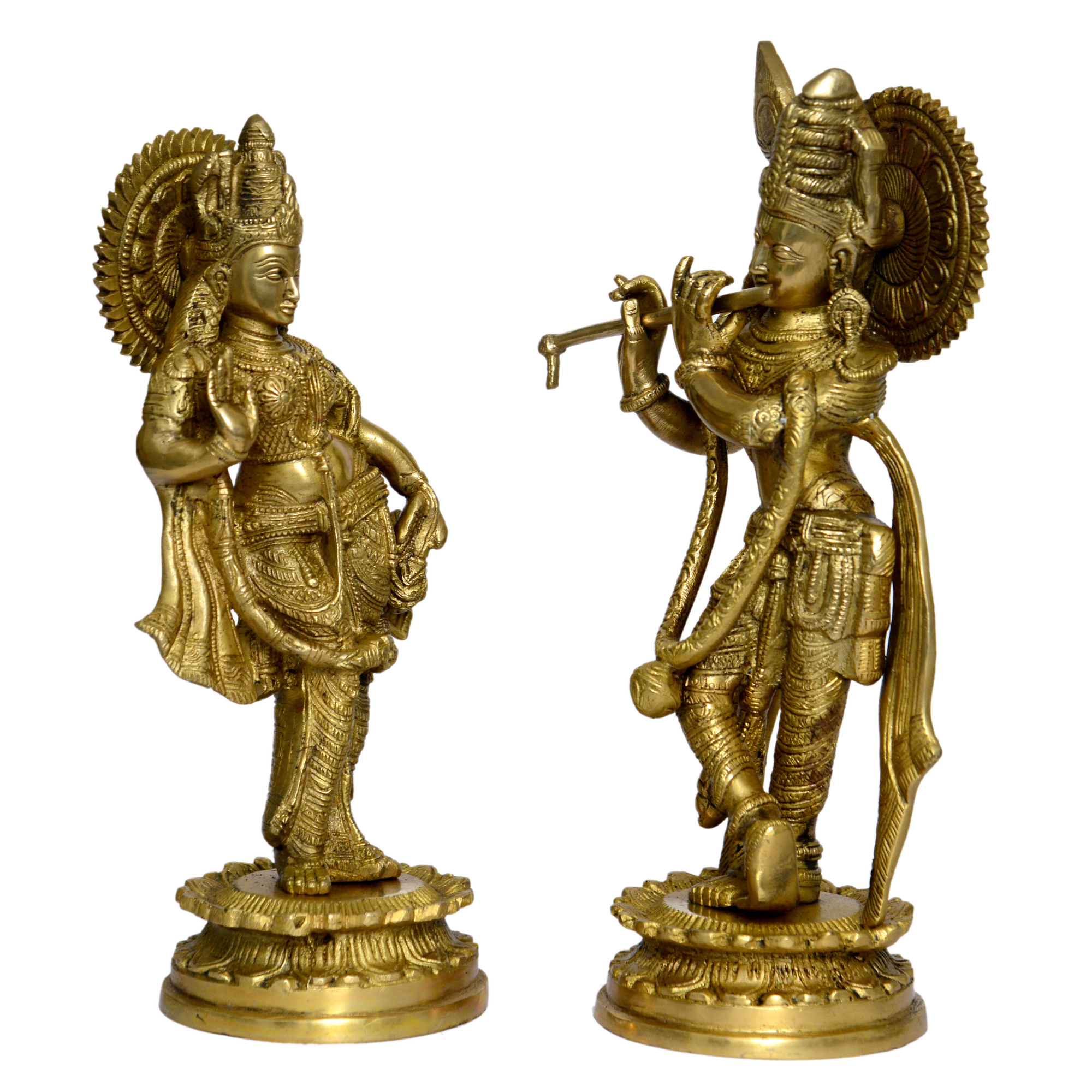 - Divine Radha Krishna Pair - Beautiful brass statue featuring Lord Krishna with Radha