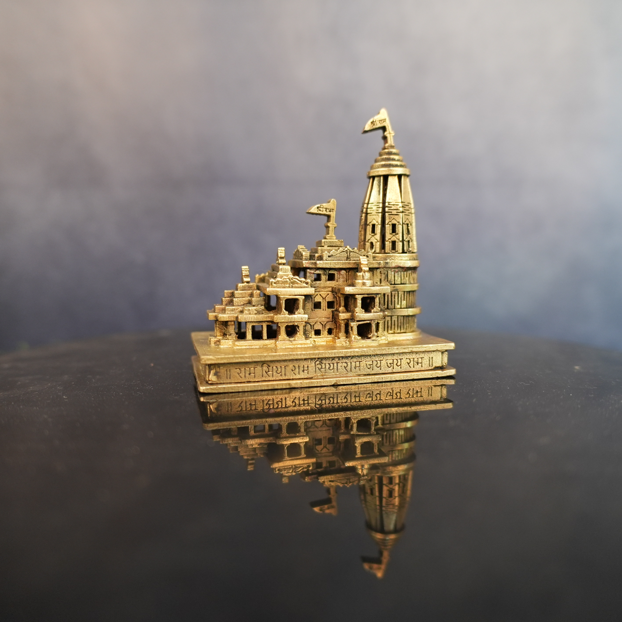 The golden polished finish enhances its aesthetic charm while adding a divine glow to your spiritual space. According to Hindu beliefs, keeping the Ram Mandir idol at home brings peace, prosperity, and moral strength, while removing negative energies.