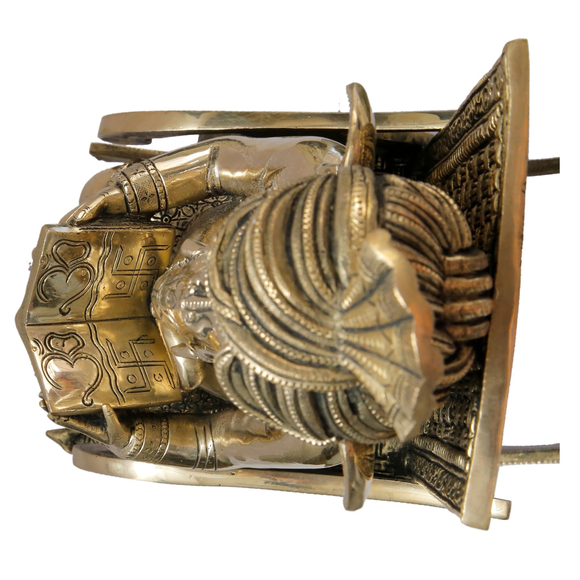 This exquisite Brass Chair Reading Ganesha statue showcases Lord Ganesha seated gracefully on a chair, engrossed in reading—a symbol of intellect, wisdom, and focus. Expertly handcrafted from high-quality brass, the statue reflects superior craftsmanship and fine detailing. Measuring 9 x 7 x 12 inches and weighing 11.5 kg, it makes a magnificent centerpiece for your home, study area, temple, or office décor. A meaningful addition to any spiritual or artistic space, it also makes an ideal gift for auspicious occasions.
