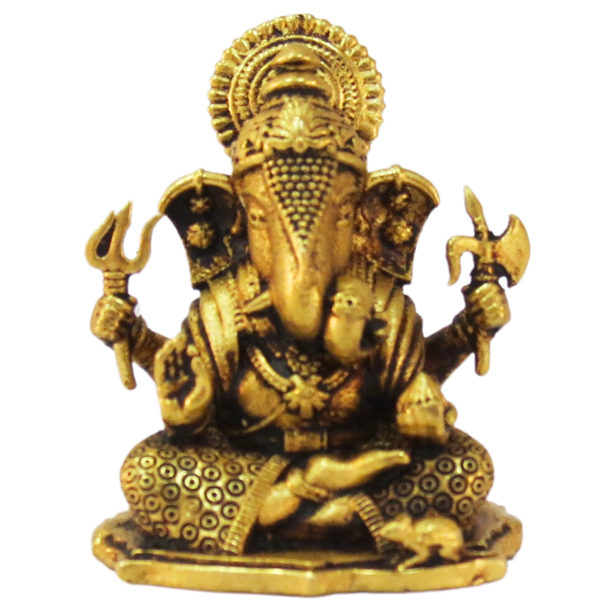 Mini Brass Ganesha Idol! Standing at a petite 1.5 inches tall (1 x 1 x 1.5 inches or 2.54 x 2.54 x 3.81 cm), this charming statue weighs only 35 grams, making it the ideal companion for your busy life. Crafted from high-quality brass, it captures the beloved Lord Ganesha in all his glory – the elephant-headed god known as the remover of obstacles, the patron of wisdom, and the harbinger of good fortune. This timeless metal not only shines with a warm golden hue but also develops a beautiful patina over time, telling the story of your devotion. Handcrafted by skilled artisans, each piece is unique, ensuring authenticity and soulful energy. In Hindu tradition, invoking Ganesha first in any venture ensures smooth paths ahead – "Vakratunda Mahakaya, Suryakoti Samaprabha" – his glory rivals a million suns! This mini idol is more than decor; it's a daily motivator.