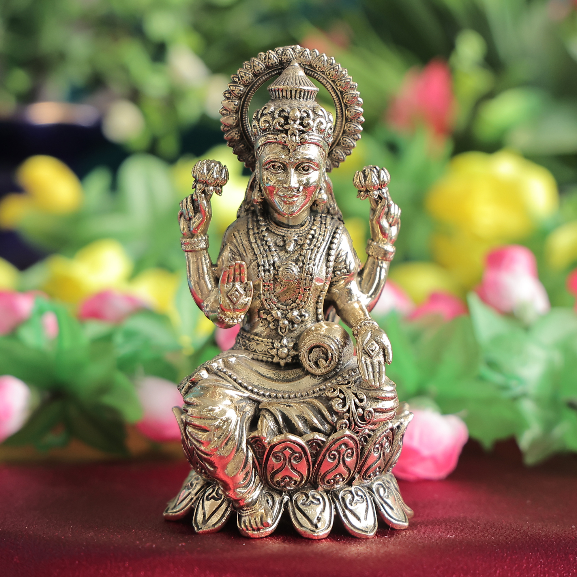 Add a divine touch to your surroundings with this elegant and traditional Lakshmi murti.