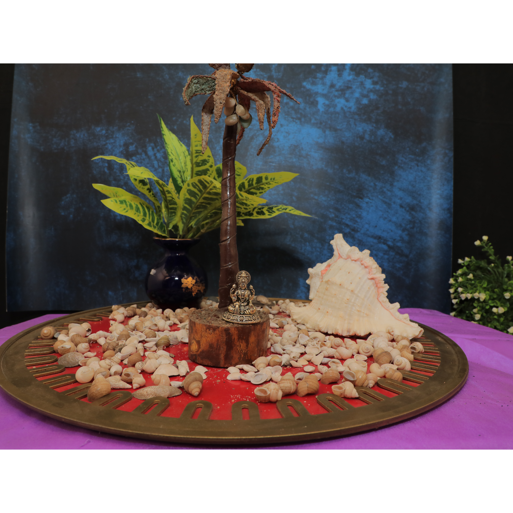 The antique brass finish gives it a timeless appeal, while the divine expression of Goddess Lakshmi adds serenity and positive energy to any environment. It is believed that keeping this idol in your home or workspace attracts prosperity, peace, and success.