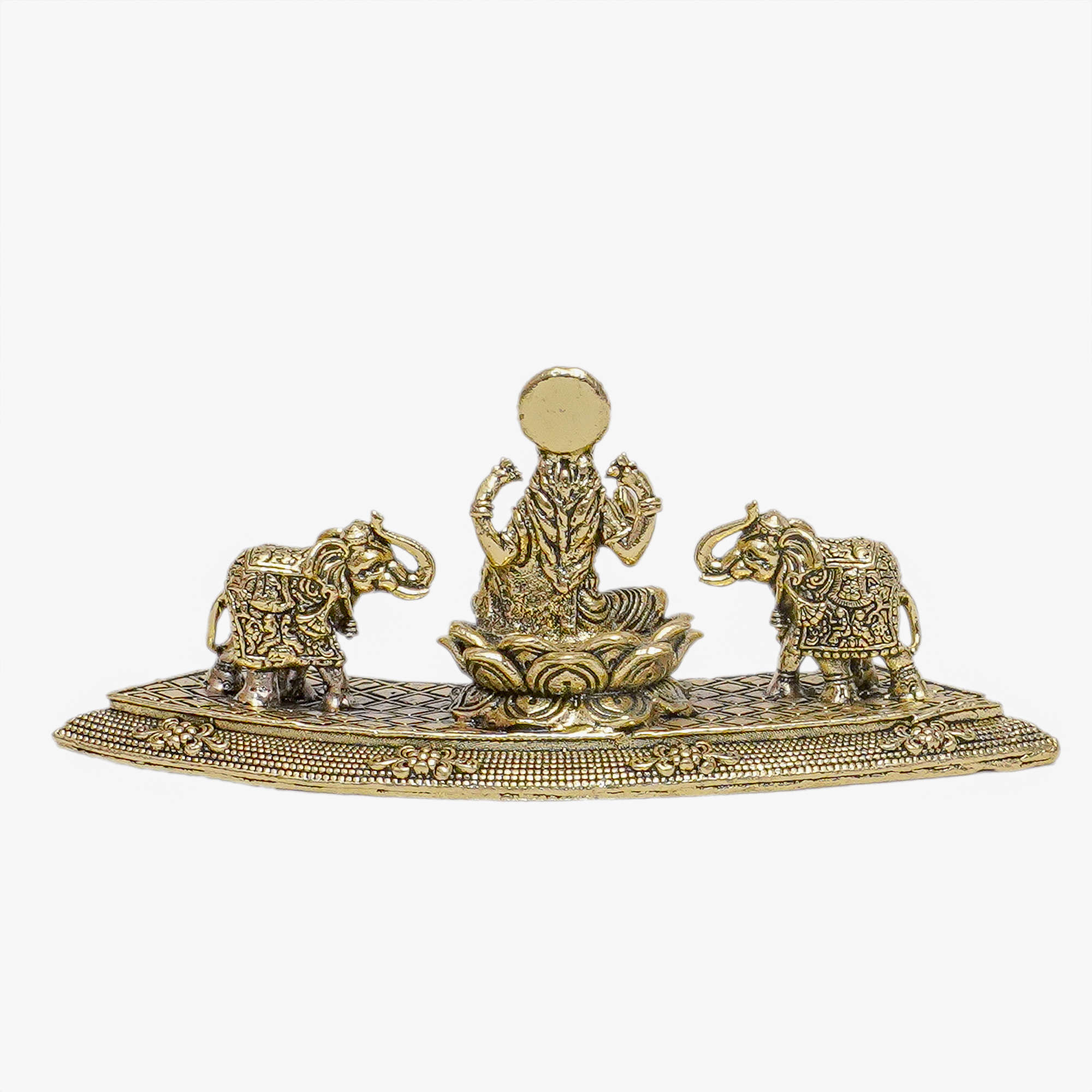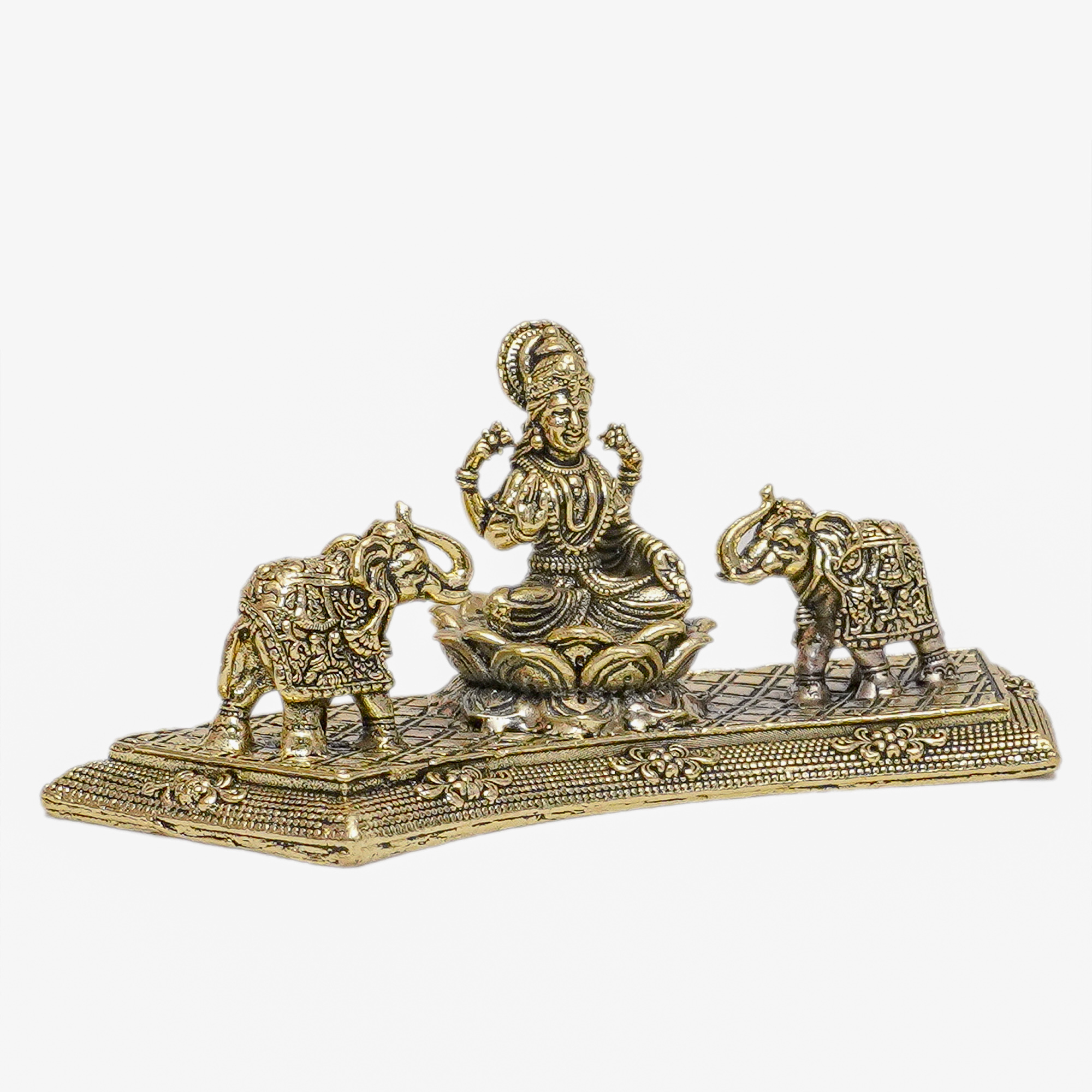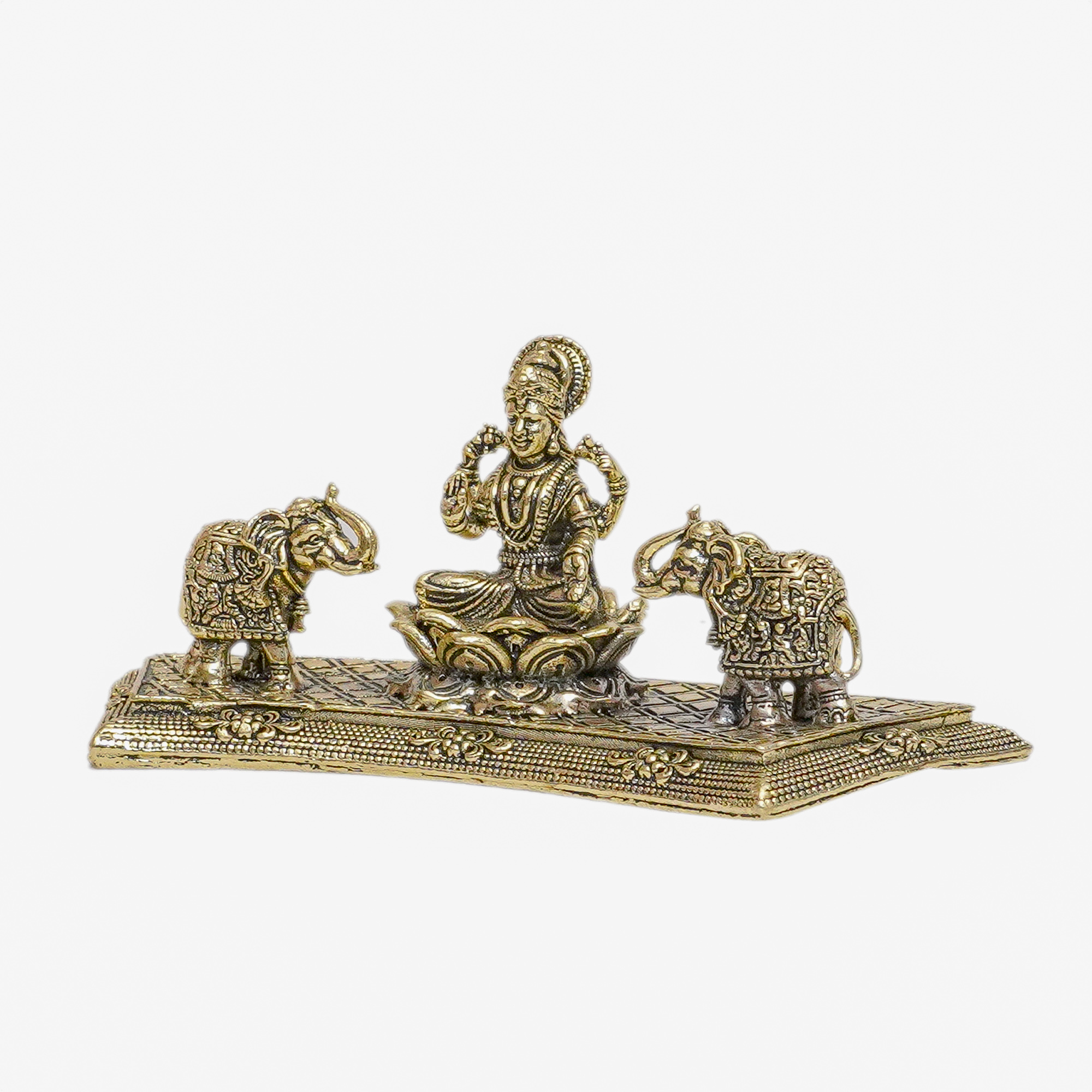 Expertly crafted by skilled Indian artisans, this idol is made from premium quality solid brass, featuring intricate detailing and a fine antique finish that radiates divine grace. The posture of Goddess Lakshmi with elephants on both sides represents power, stability, and prosperity, making it an auspicious addition to any spiritual setting.