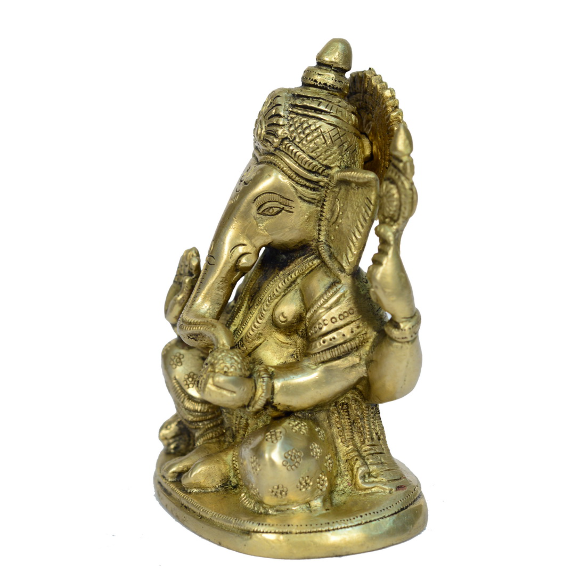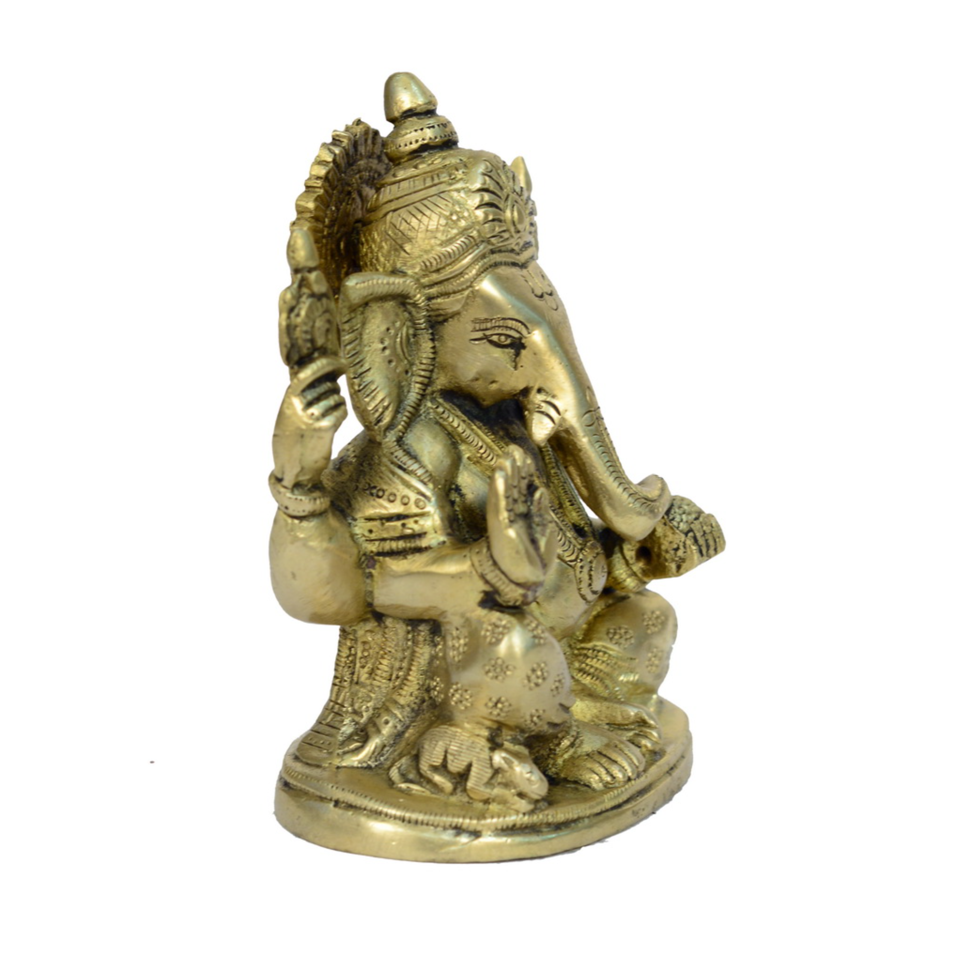 Beautifully crafted Brass Sitting Ganesha idol with a detailed finish, ideal for worship, decor, or gifting. Brings positivity, peace, and divine blessings.