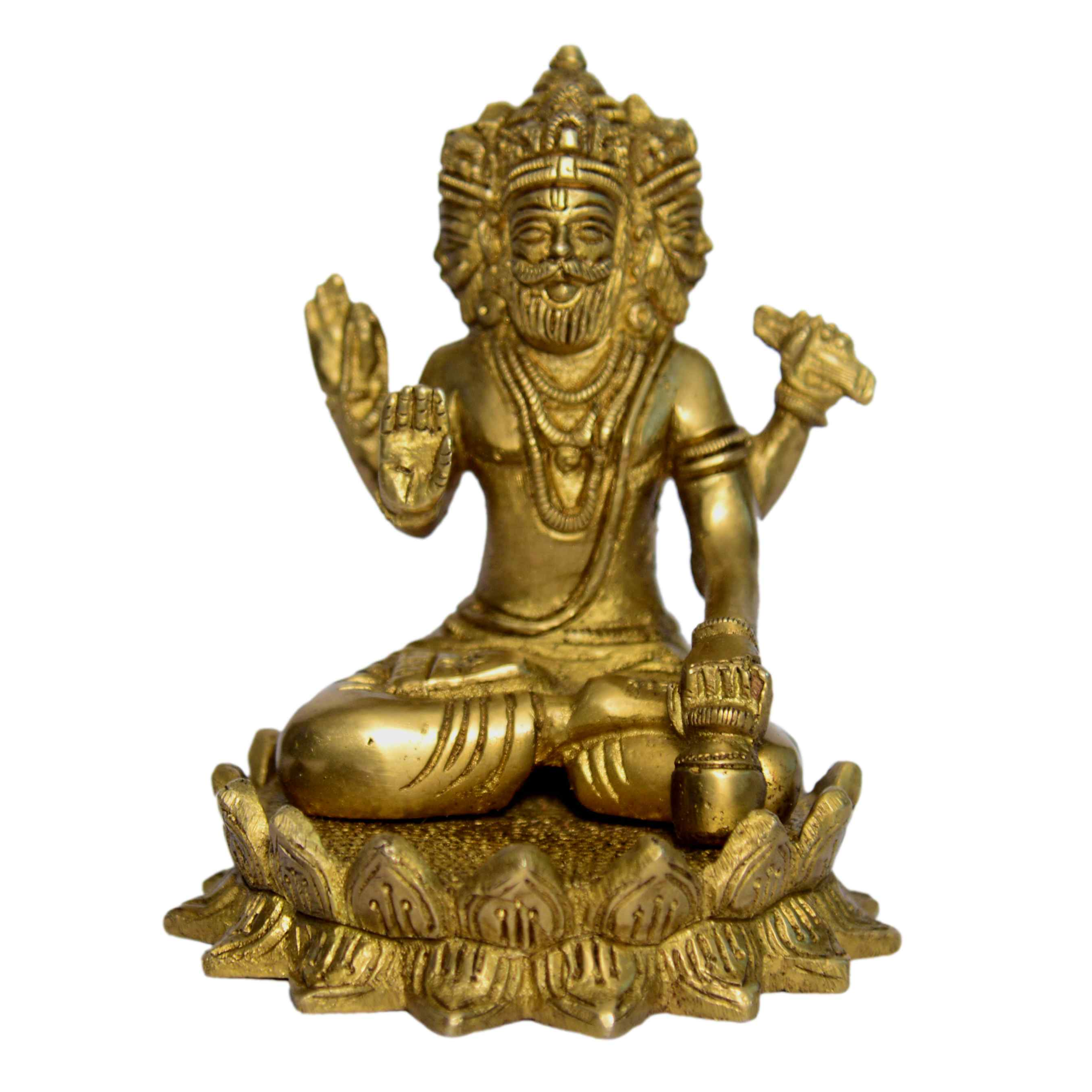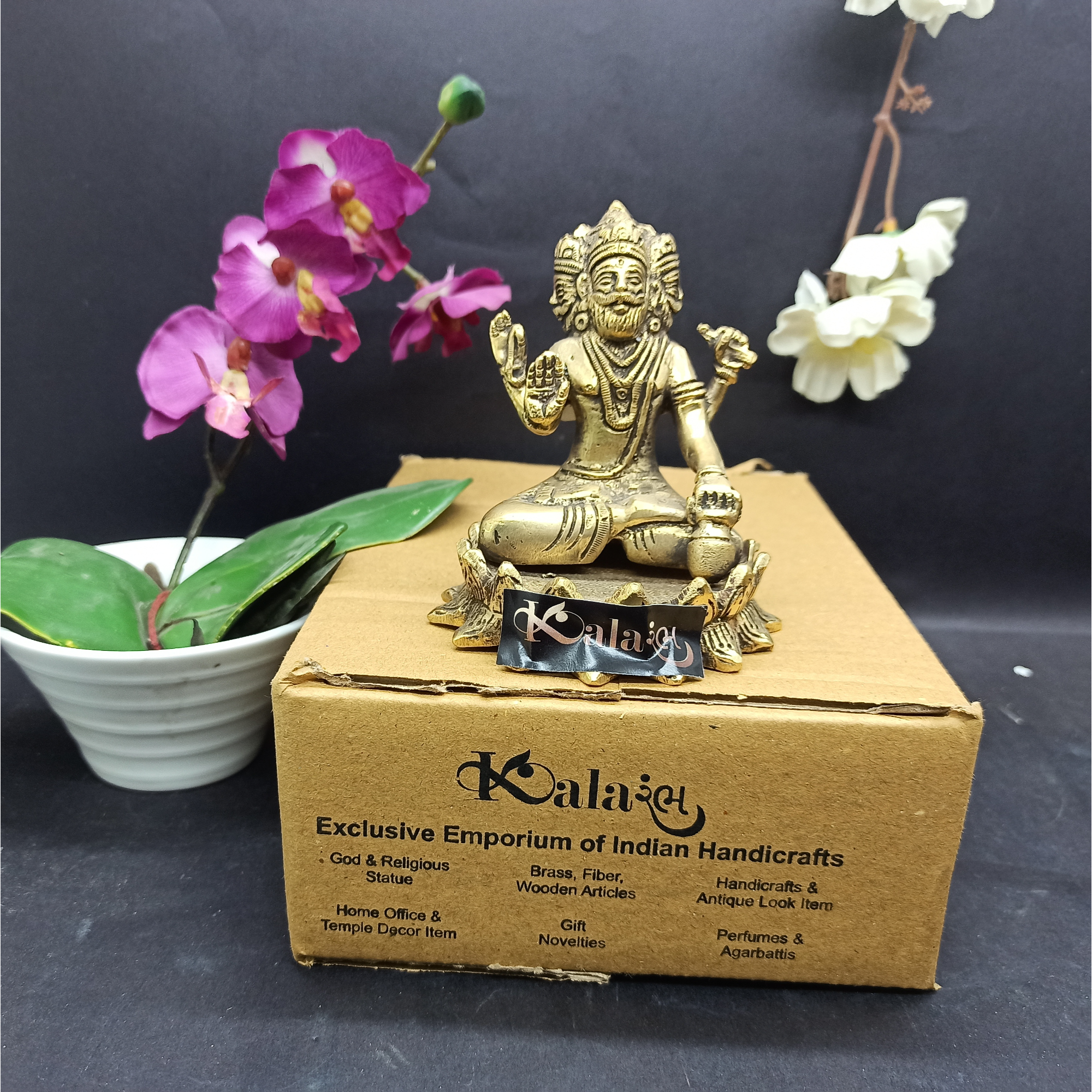 Beautiful Brass Lord Brahma idol with intricate handwork. Perfect for worship, meditation, or as a centerpiece in home décor.