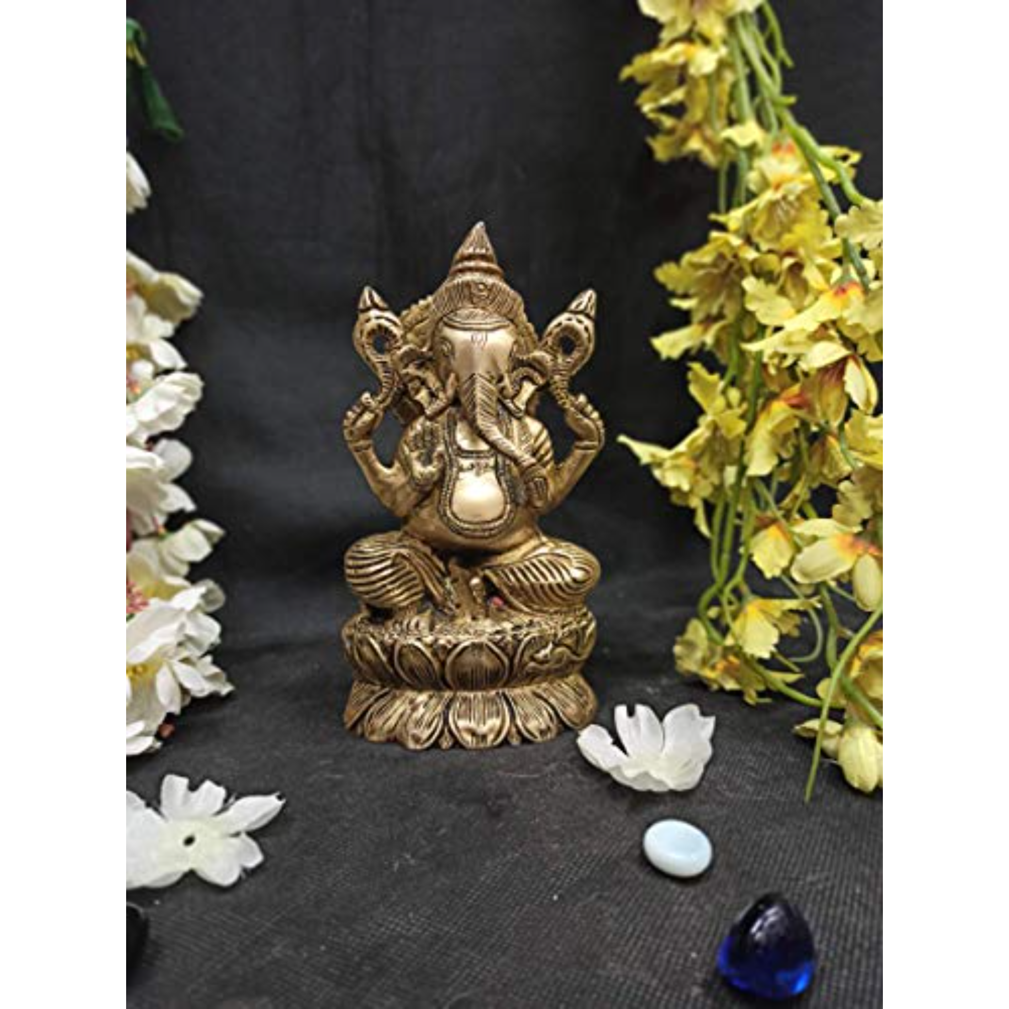 Depicts Lord Ganesha seated gracefully on a Kamal (lotus), symbolizing purity and prosperity.