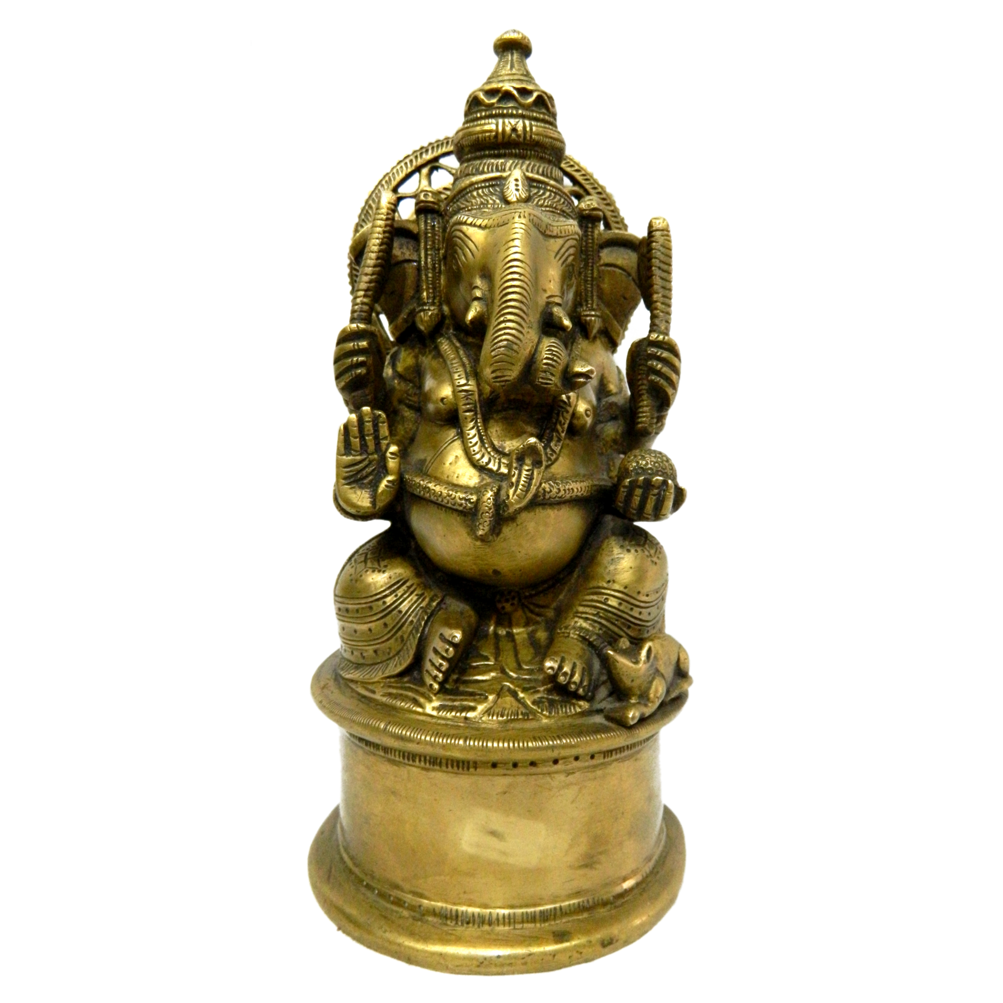 This Brass Ganesh Round Base Idol features Lord Ganesha seated on a beautifully crafted round base, symbolizing abundance and positivity. Handcrafted from high-quality brass with intricate detailing, it is ideal for home, temple, office decor, or gifting on festive occasions.