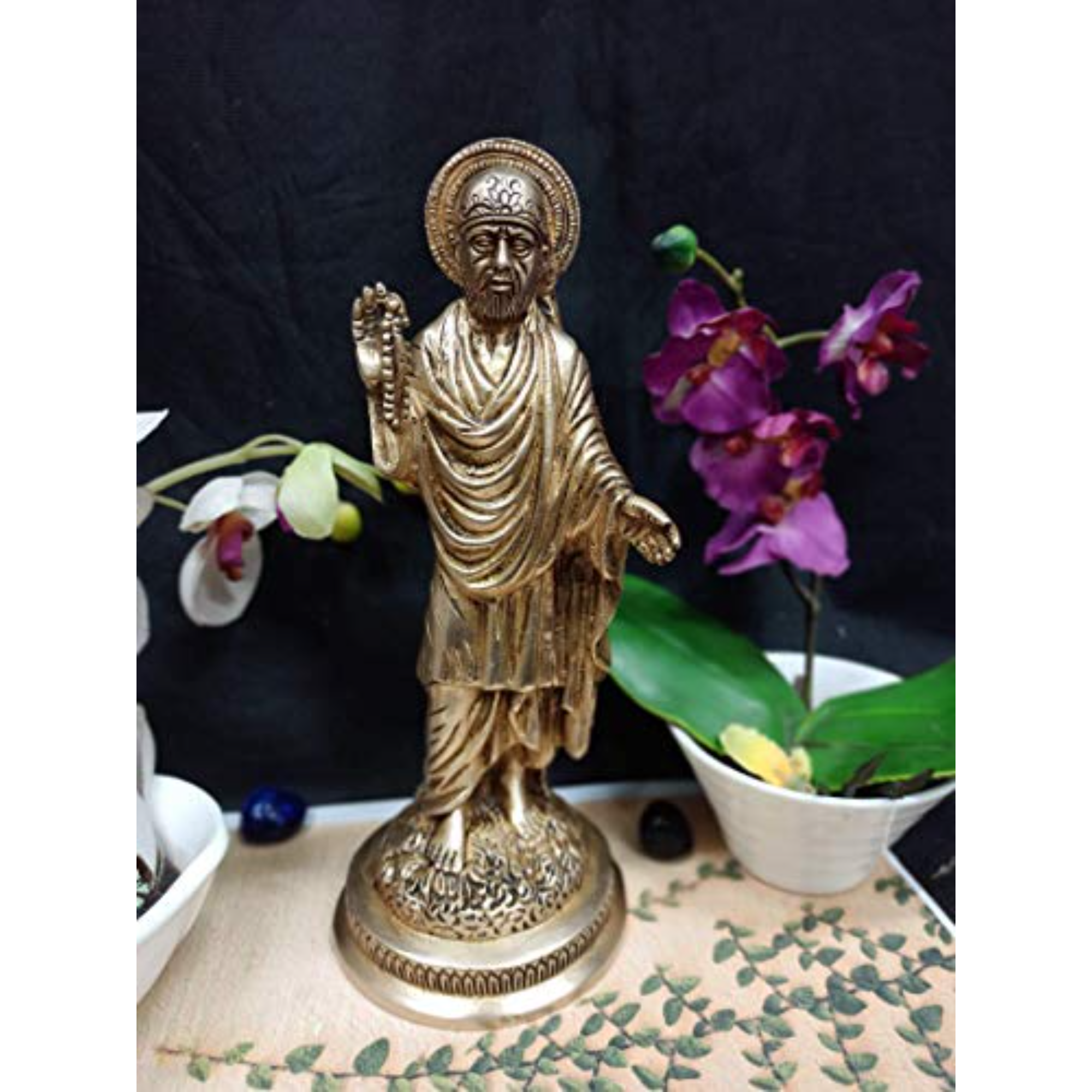 This Brass Saibaba Standing Idol is a finely handcrafted piece representing the revered Saint Sai Baba. Made from solid brass with intricate detailing and a polished finish, it is perfect for pooja rooms, temples, or as a spiritual gift.