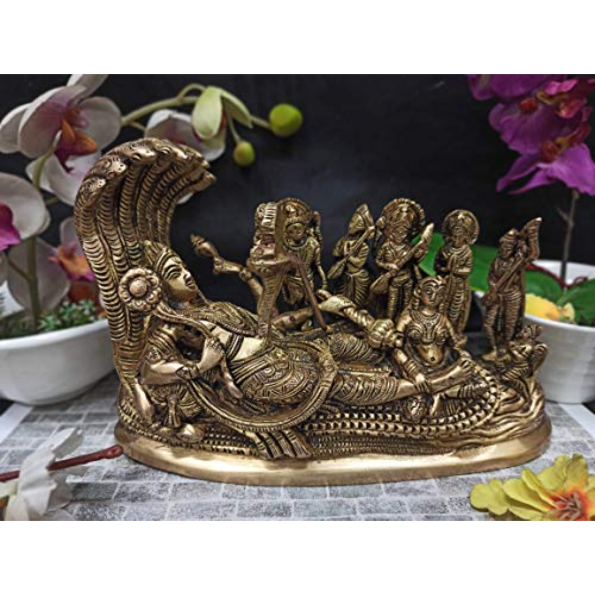 This Brass Vishnu Family Idol depicts Lord Vishnu with Goddess Lakshmi and their children, symbolizing prosperity, protection, and family unity. Crafted from high-quality brass with intricate detailing, it is ideal for home, temple, or office decor and makes a meaningful spiritual gift.