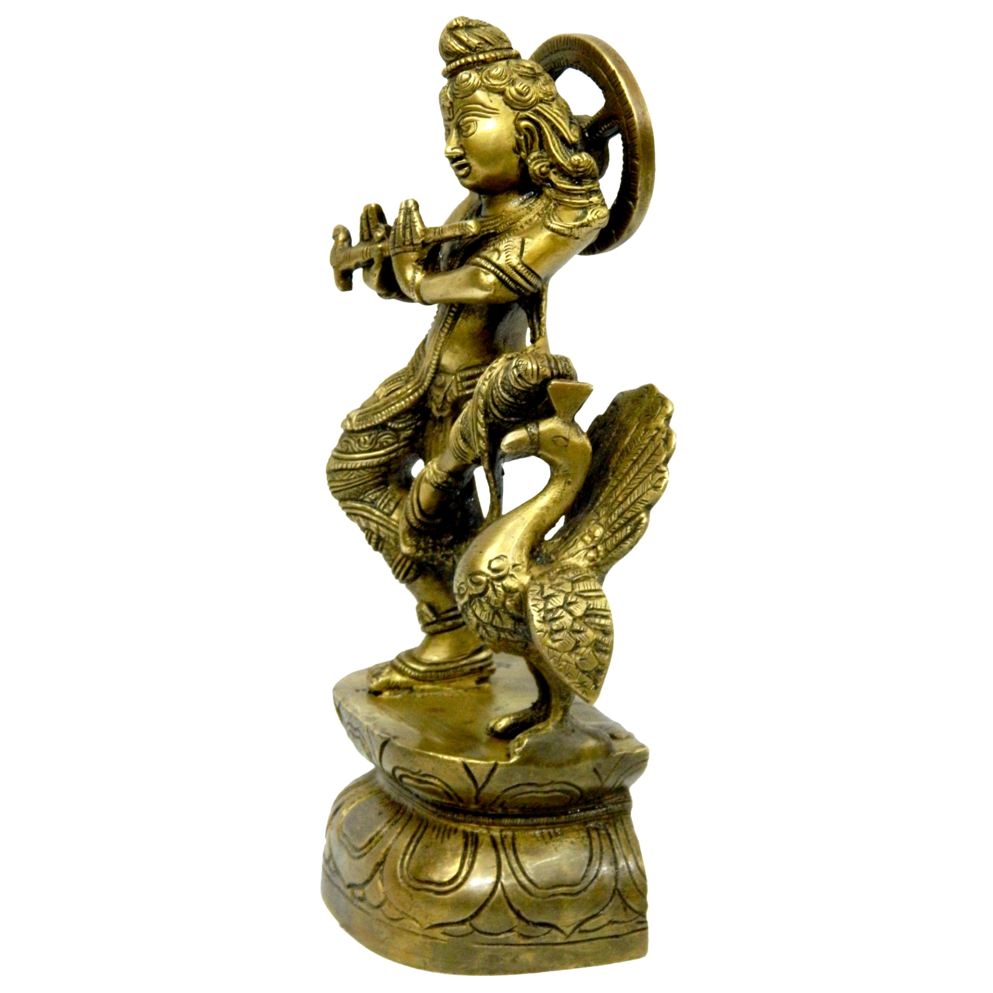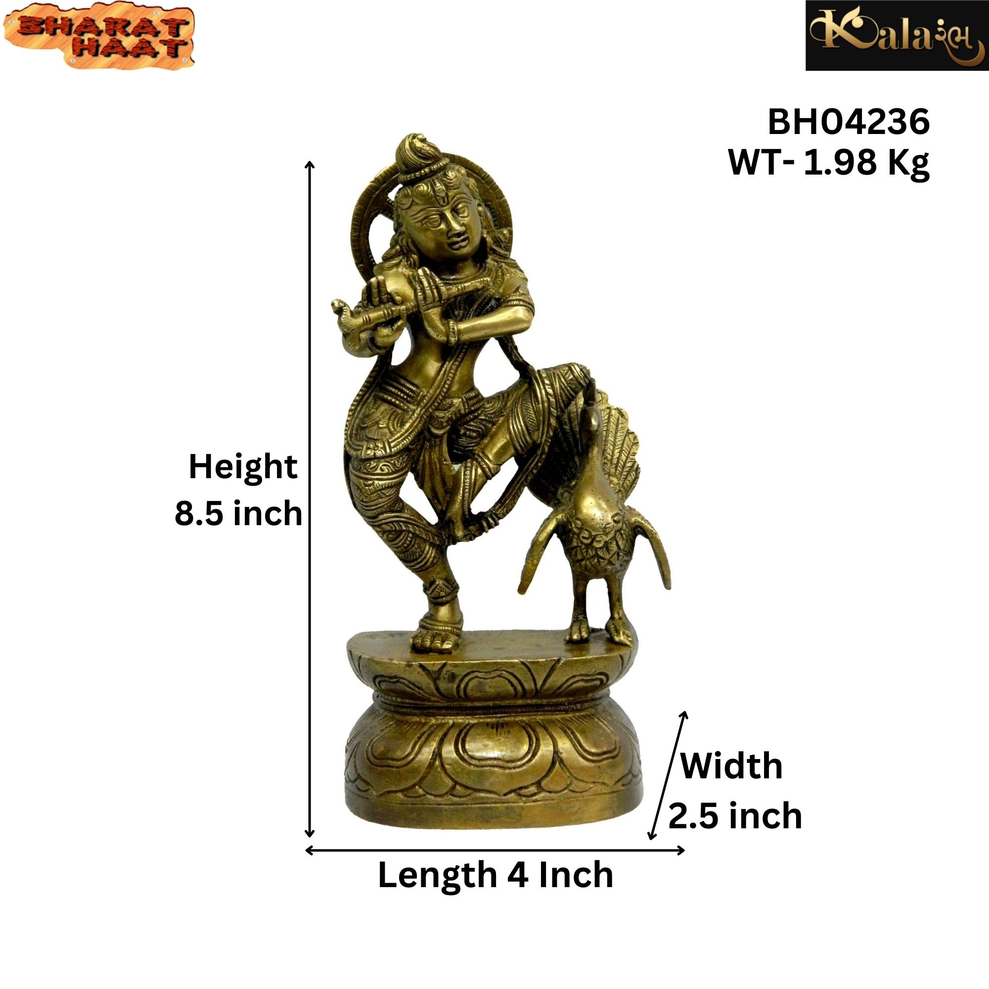 Exquisitely detailed Brass Dancing Krishna idol representing divine love and bliss. Perfect for enhancing the spiritual beauty of your home, office, or temple.